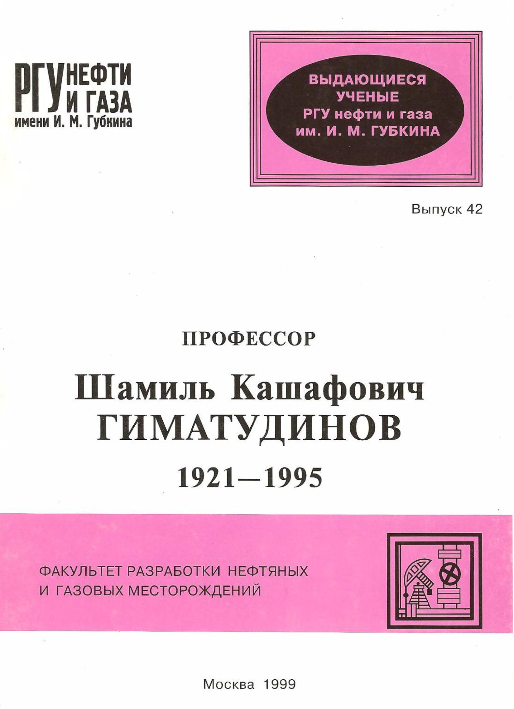 Посвящена известному ученому-нефтянику, специалисту в области физики нефтяного и газового пласта, профессору Шамилю Кашафовичу Гиматудинову.