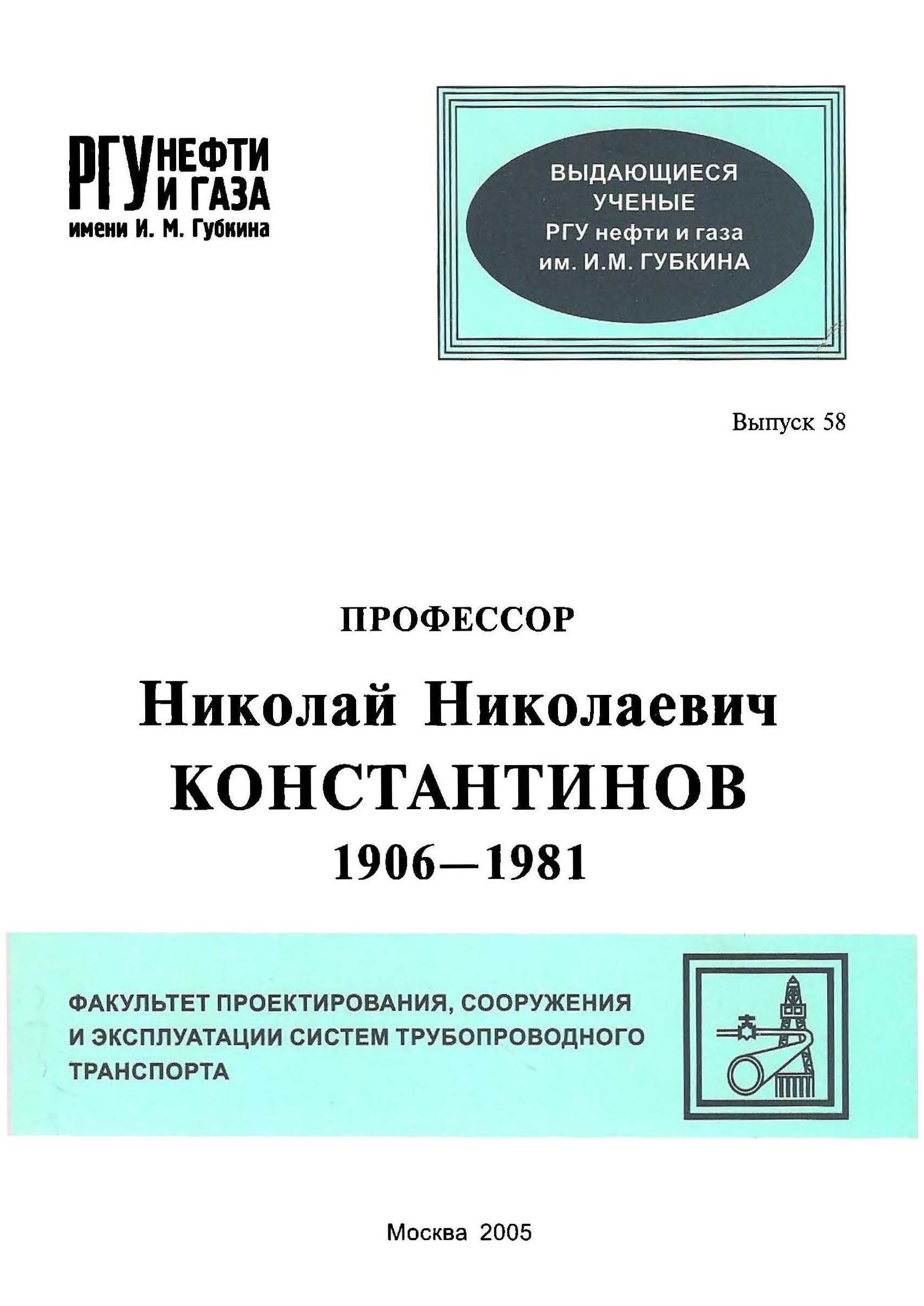 Книга посвящена выдающемуся ученому в области трубопроводного транспорта нефти и промышленной теплоэнергетики Константинову Н.Н.