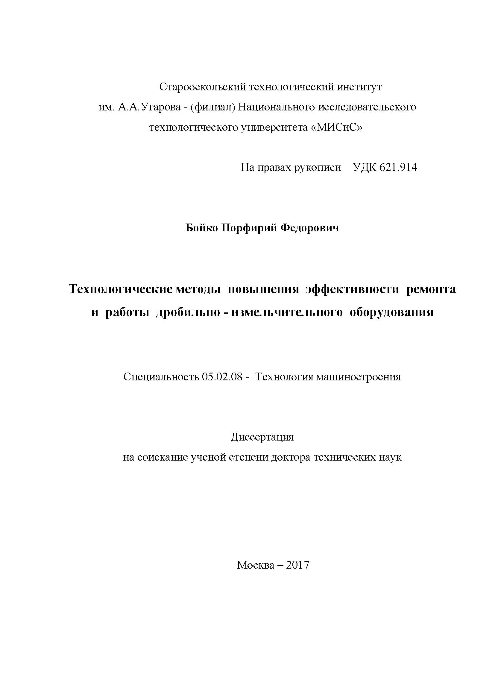 Целью работы является разработка и исследование технологических методов повышения эффективности ремонта и работы дробильно - измельчительного оборудования ГОКа.