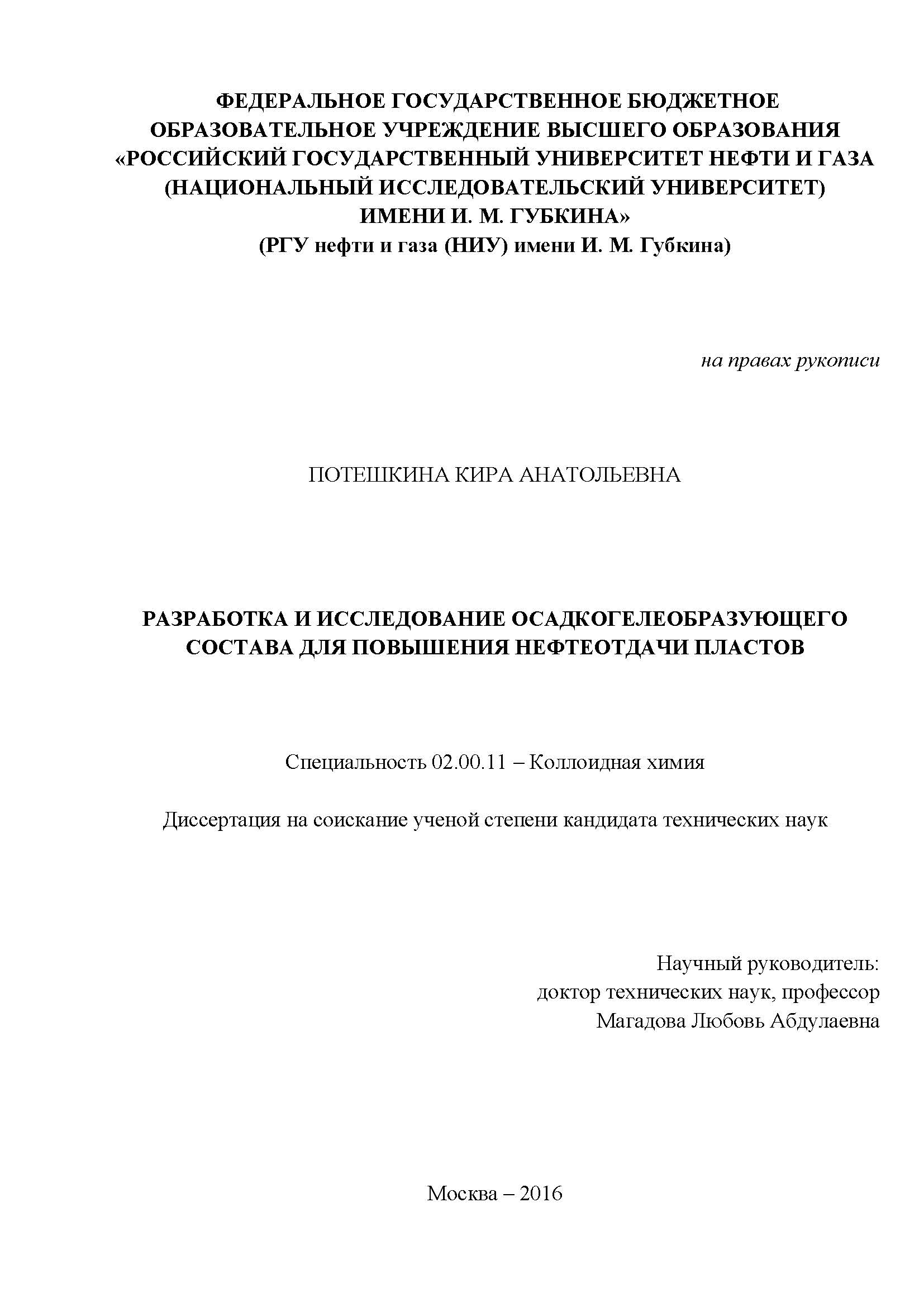 Разработка и исследование осадкогелеобразующего состава для повышения нефтеотдачи пластов