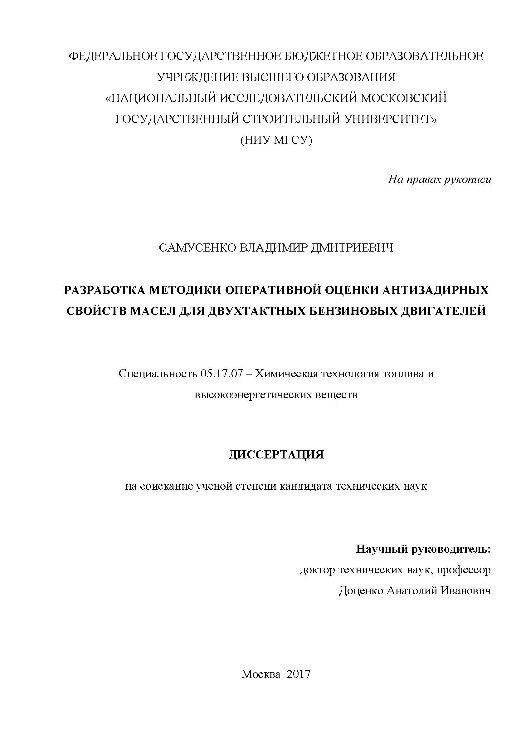 Разработка методики оперативной оценки антизадирных свойств масел для двухтактных бензиновых двигателей