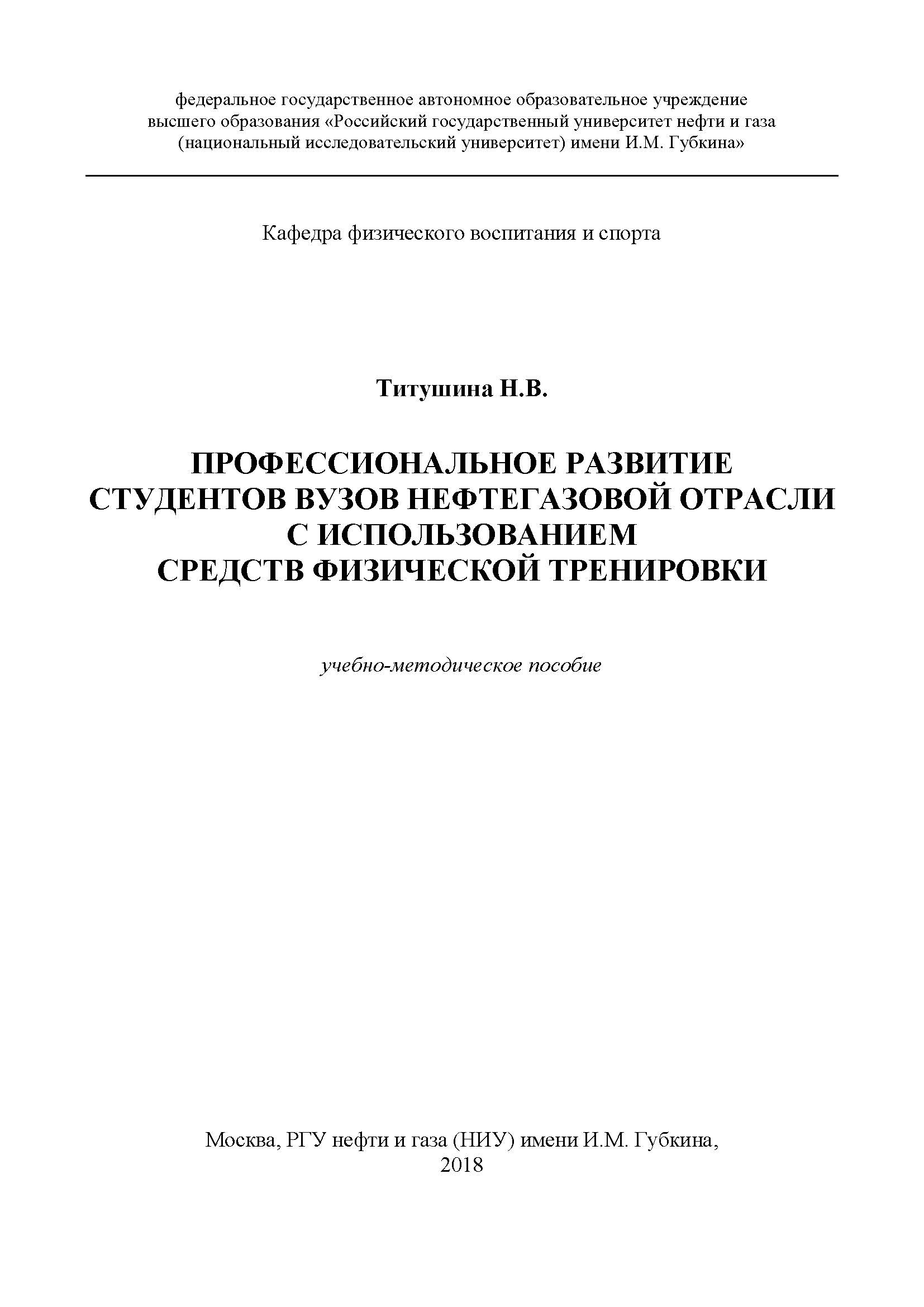 В пособии рассмотрены основные положения науки о профессиональном развитии студентов вузов нефтегазовой отрасли; представлены содержательные характеристики этого процесса. Изложены основы физической тренировки студентов вузов нефтегазовой отрасли профессионально-прикладной направленности.