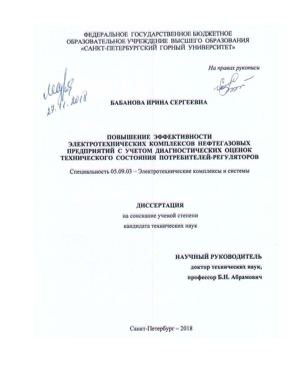 Повышение эффективности электротехнических комплексов нефтегазовых предприятий с учетом диагностических оценок технического состояния потребителей-регуляторов