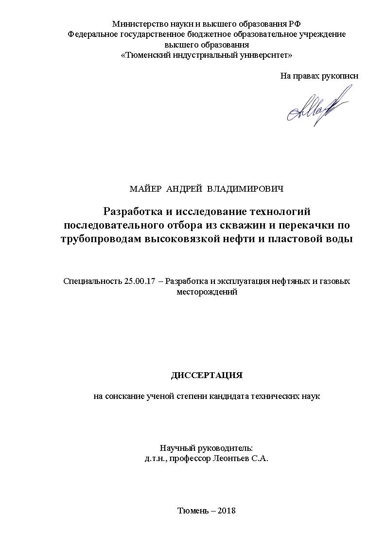 Разработка и исследование технологий последовательного отбора из скважин и перекачки по трубопроводам высоковязкой нефти и пластовой воды