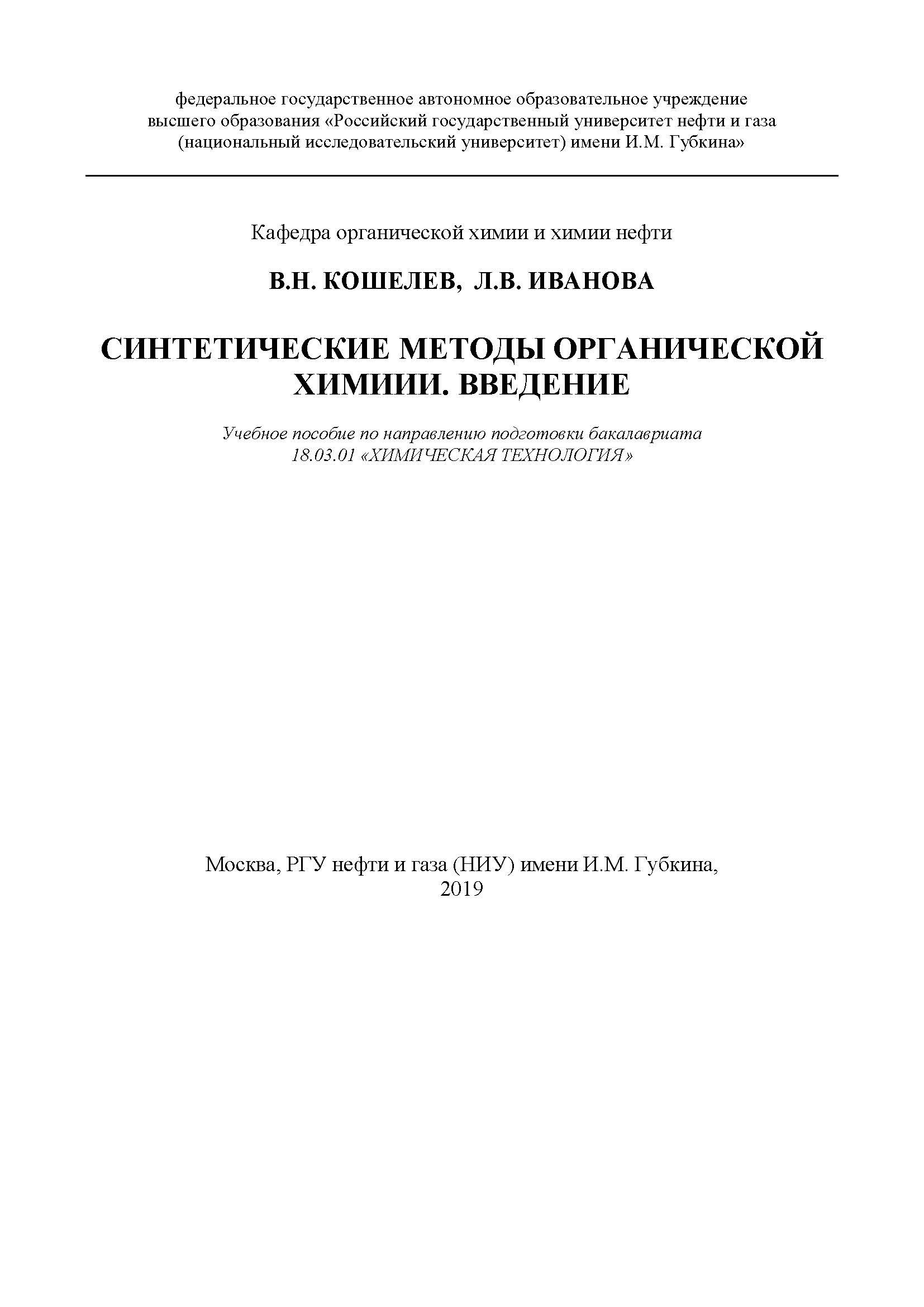 "Кошелев В.Н. и др. Синтетические методы органической химии" (PDF - 0.84 Мб)