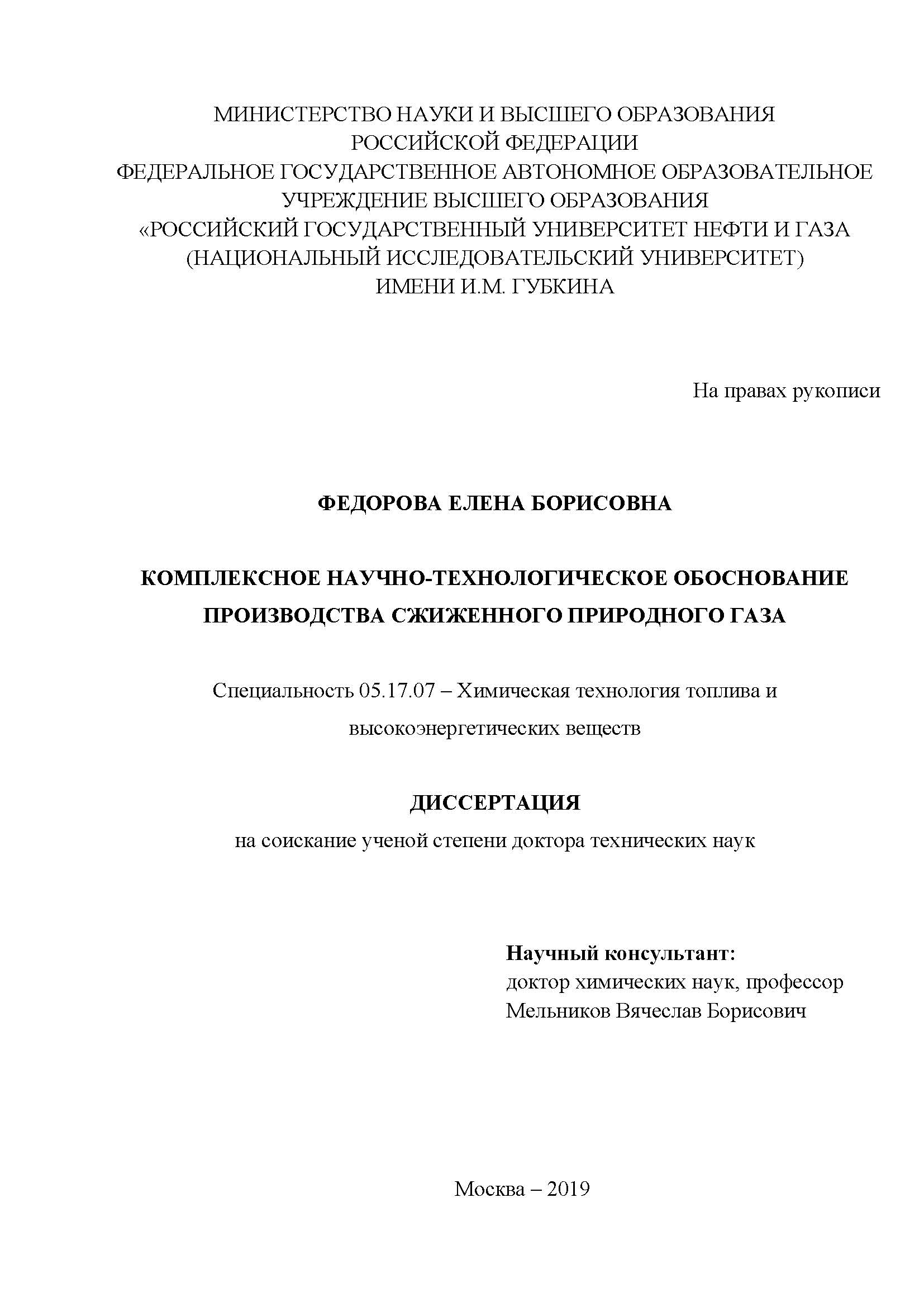 Комплексное научно-технологическое обоснование производства сжиженного природного газа