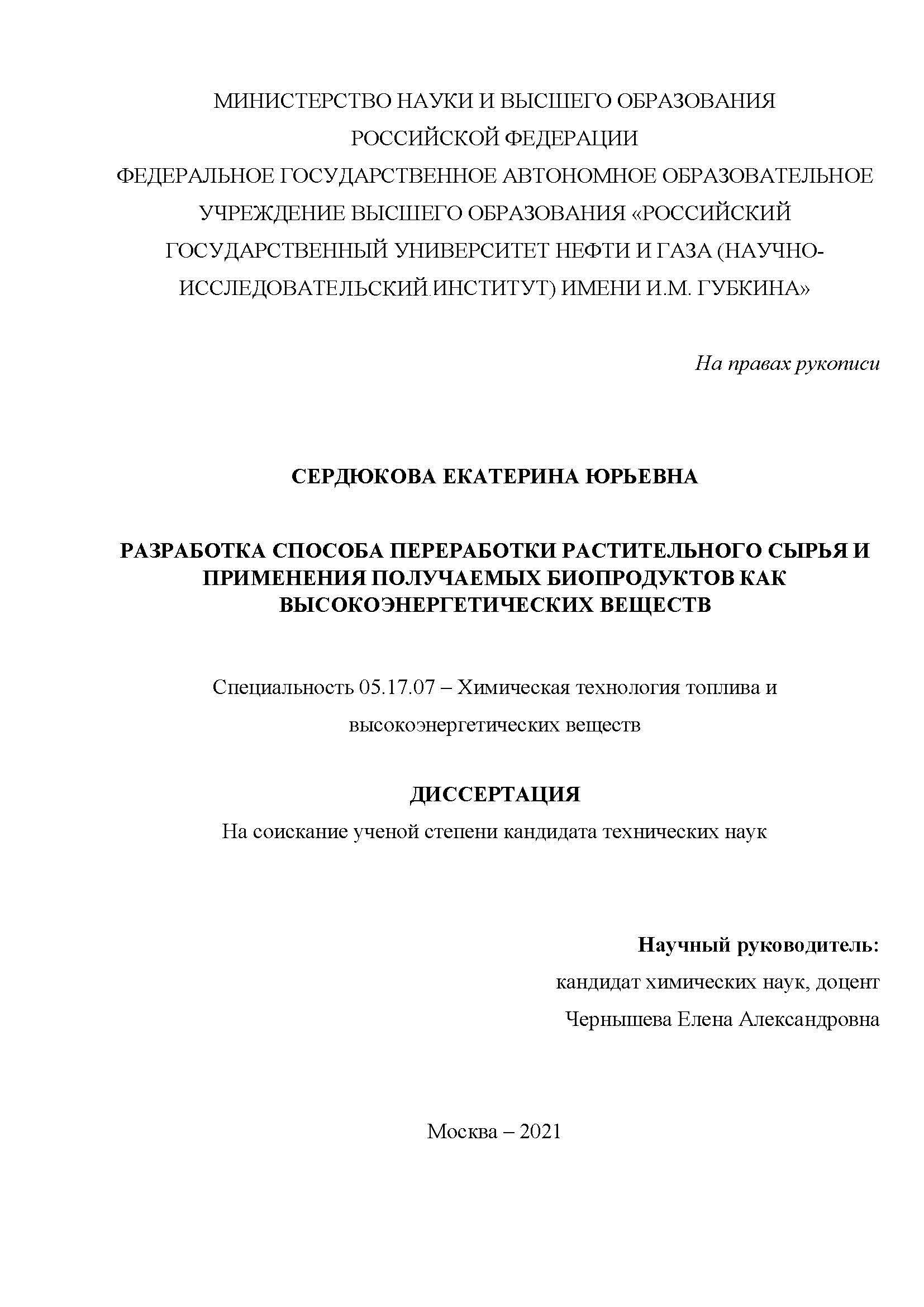 Разработка способа переработки растительного сырья и применения получаемых биопродуктов как высокоэнергетических веществ