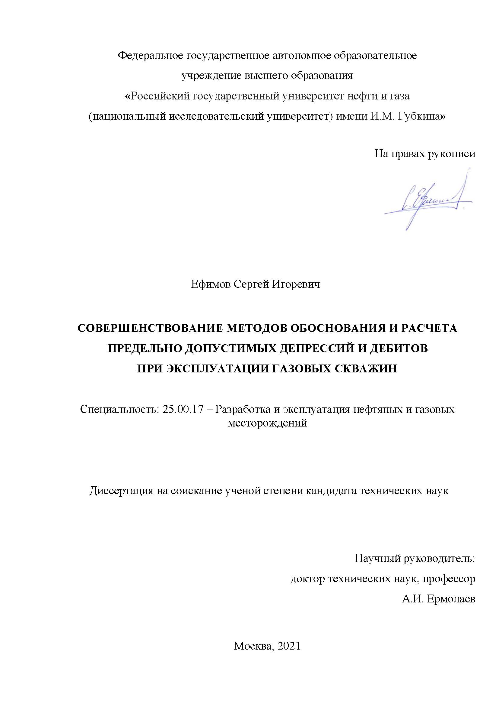 Совершенствование методов обоснования и расчета предельно допустимых депрессий и дебитов при эксплуатации газовых скважин