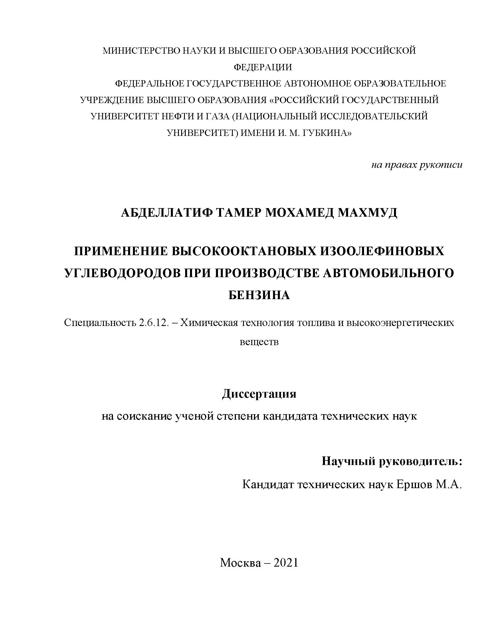 "Абделлатиф Тамер Мохамед Махмуд - диссертация" (PDF - 2.92 Мб)