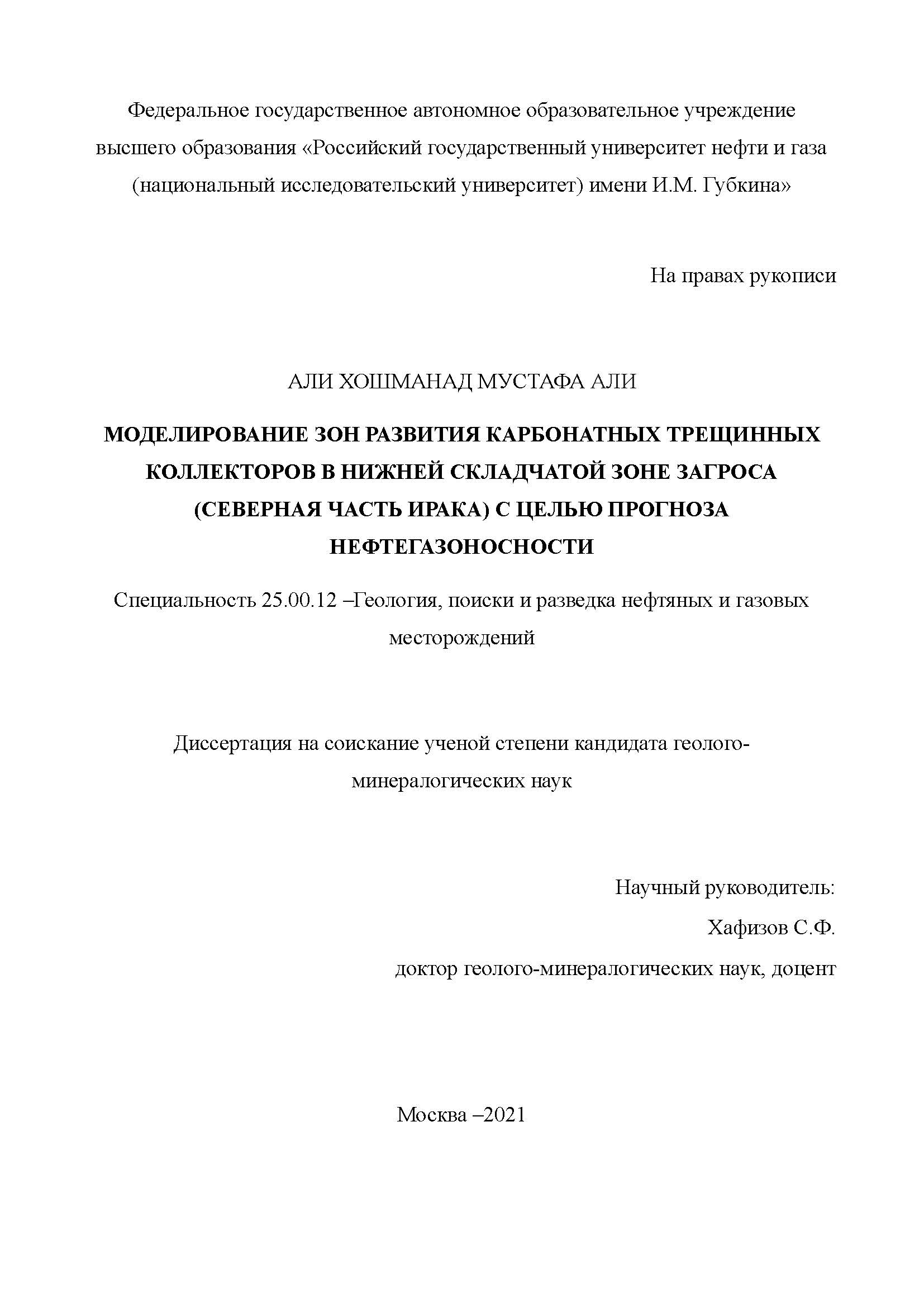 Моделирование зон развития карбонатных трещинных коллекторов в нижней складчатой зоне Загроса (северная часть Ирака) с целью прогноза нефтегазоносности