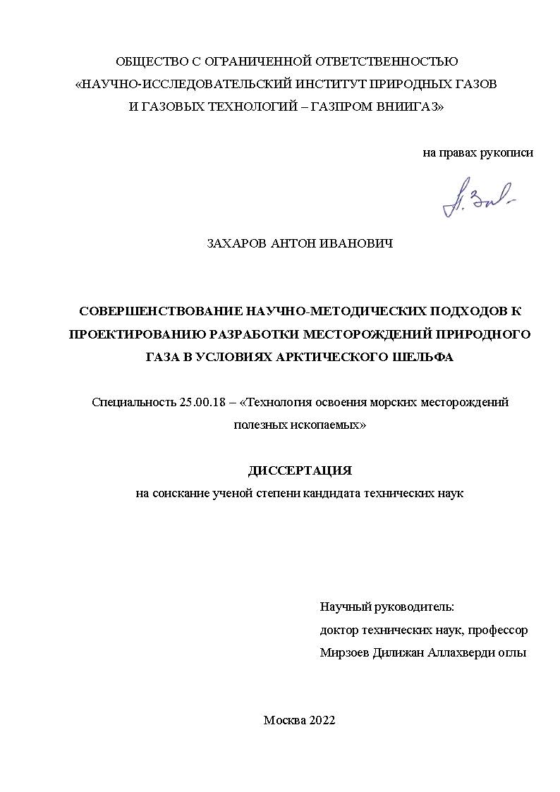 Совершенствование научно-методических подходов к проектированию разработки месторождений природного газа в условиях арктического шельфа