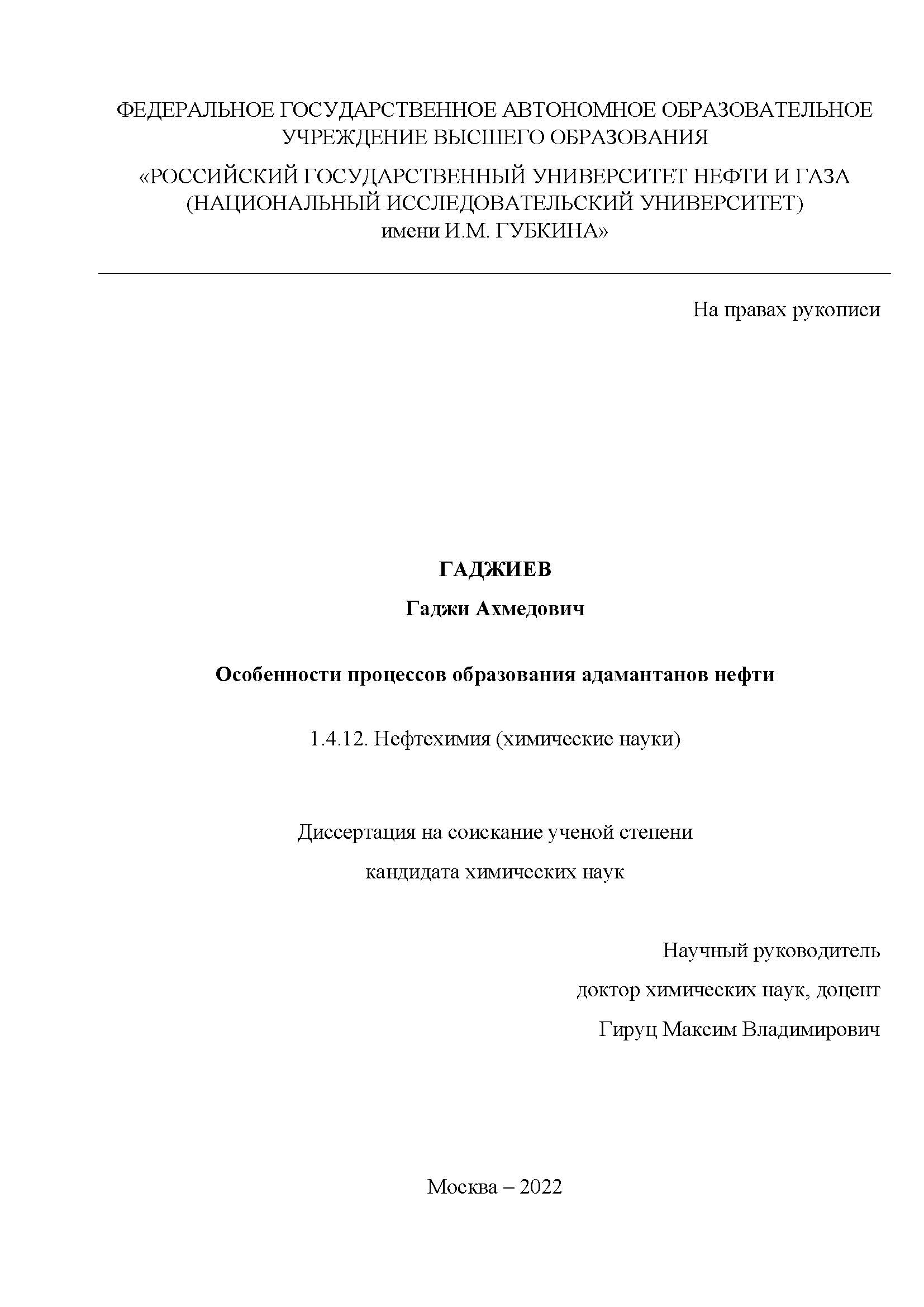 Целью работы является выявление путей образования адамантанов состава С10–С14 в нефтях и их получения из различных природных источников.