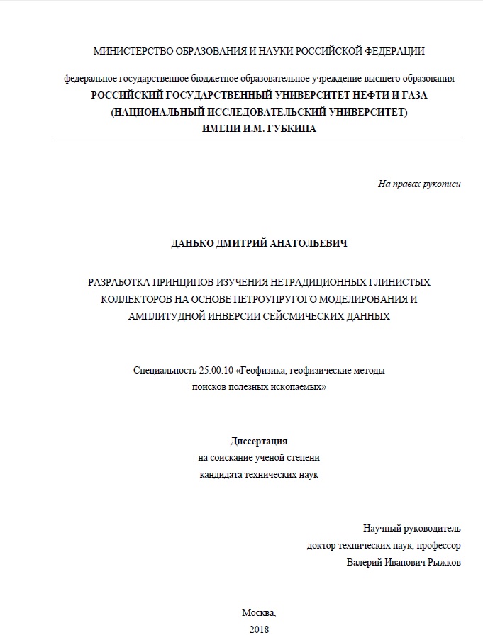 Разработка принципов изучения нетрадиционных глинистых коллекторов на основе петроупругого моделирования и амплитудной инверсии сейсмических данных