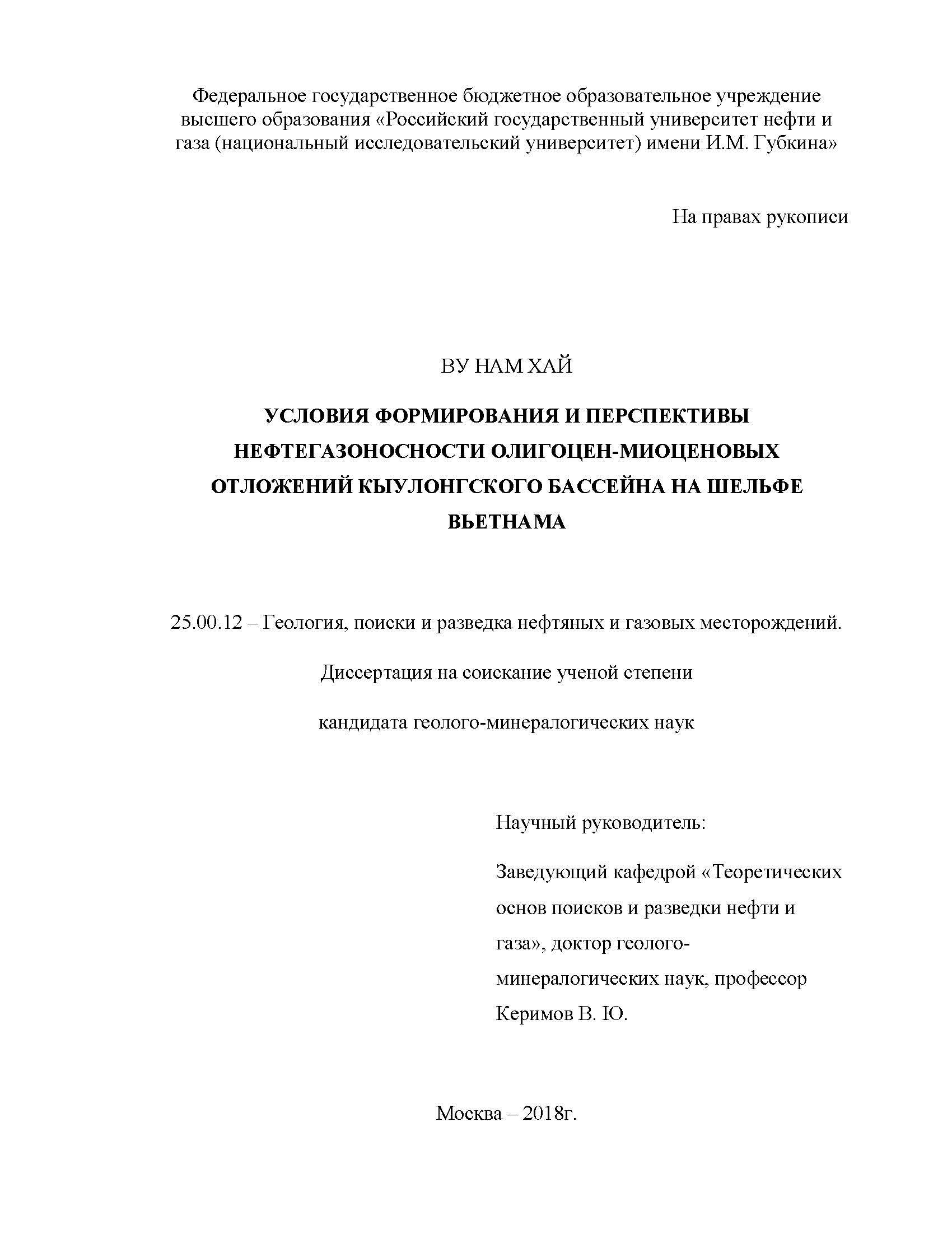 Условия формирования и перспективы нефтегазоносности олигоцен-миоценовых отложений Кыулонгского бассейна на шельфе Вьетнама