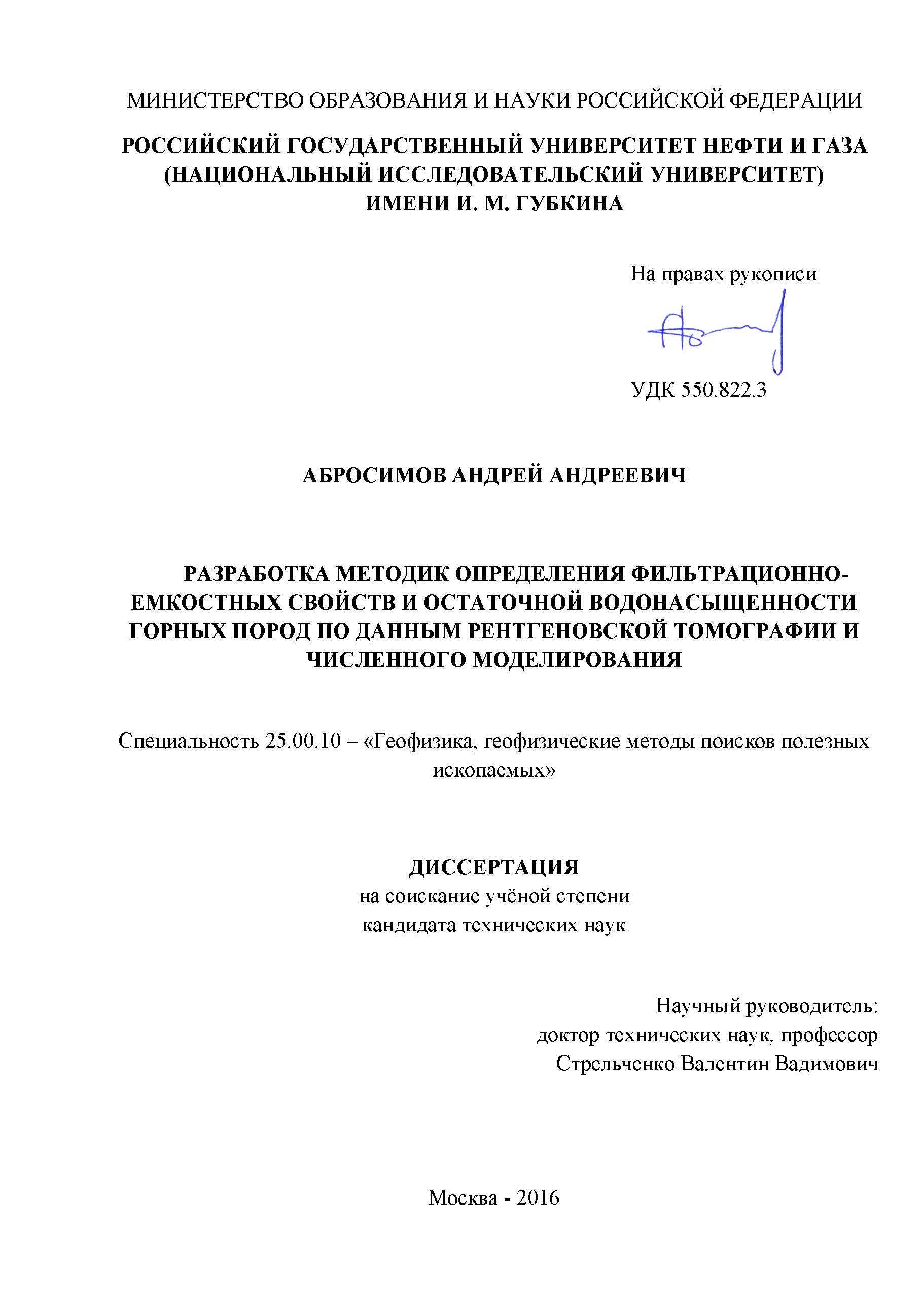Разработка методик определения фильтрационно-емкостных свойств и остаточной водонасыщенности горных пород по данным рентгеновской томографии и численного моделирования