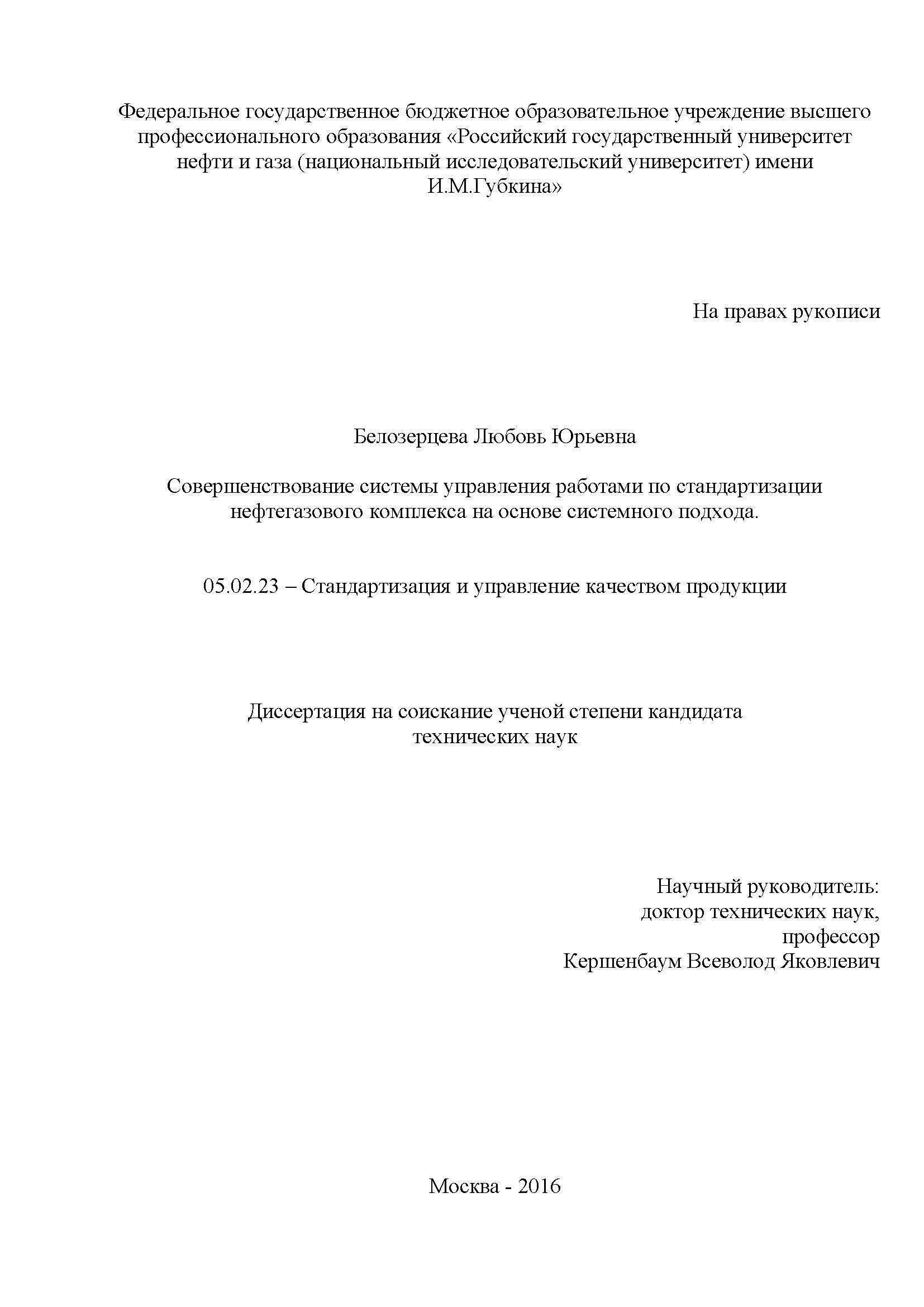 Совершенствование системы управления работами по стандартизации нефтегазового комплекса на основе системного подхода