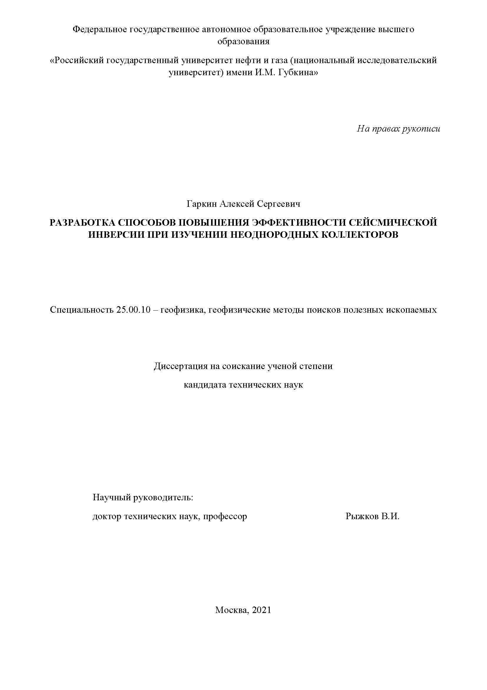 Разработка способов повышения эффективности сейсмической инверсии при изучении неоднородных коллекторов