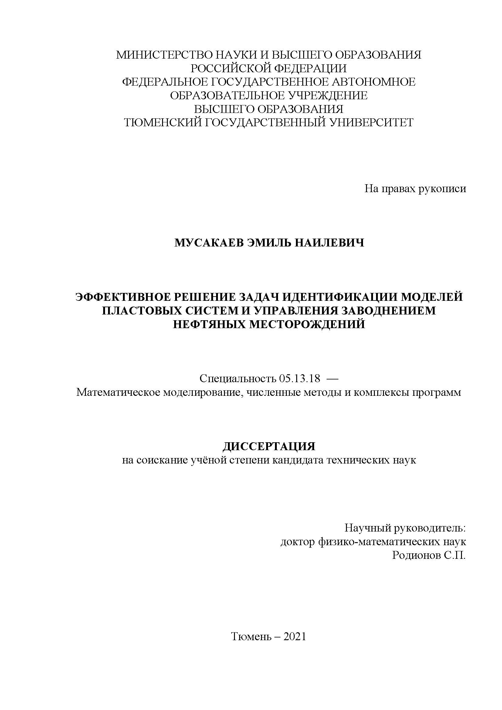 Эффективное решение задач идентификации моделей пластовых систем и управления заводнением нефтяных месторождений