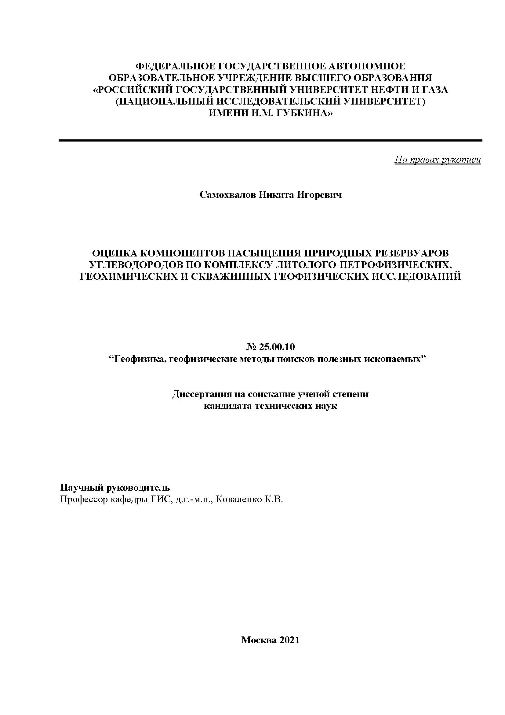Оценка компонентов насыщения природных резервуаров углеводородов по комплексу литолого-петрофизических, геохимических и скважинных геофизических исследований
