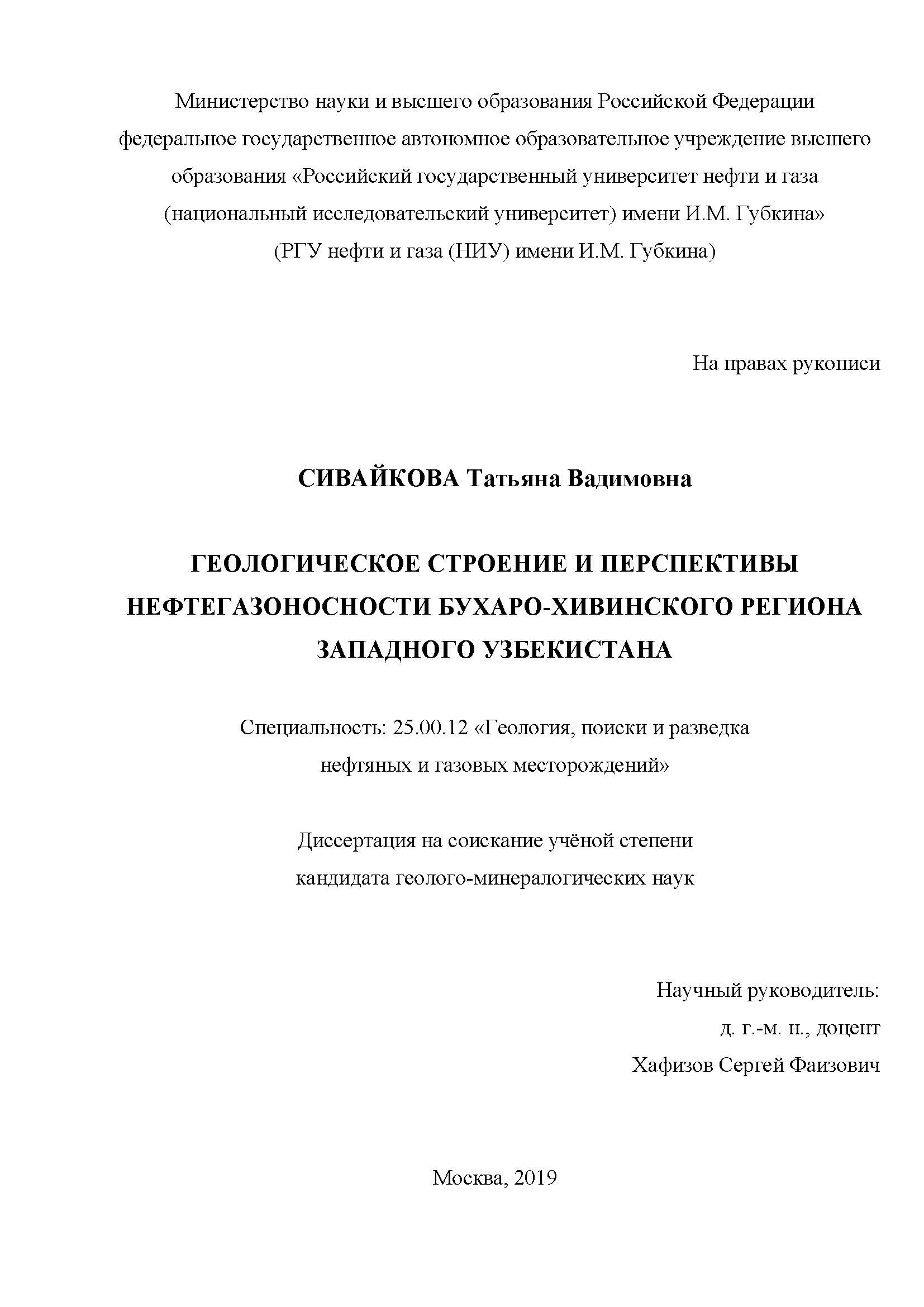 Геологическое строение и перспективы нефтегазоносности Бухаро-Хивинского региона Западного Узбекистана