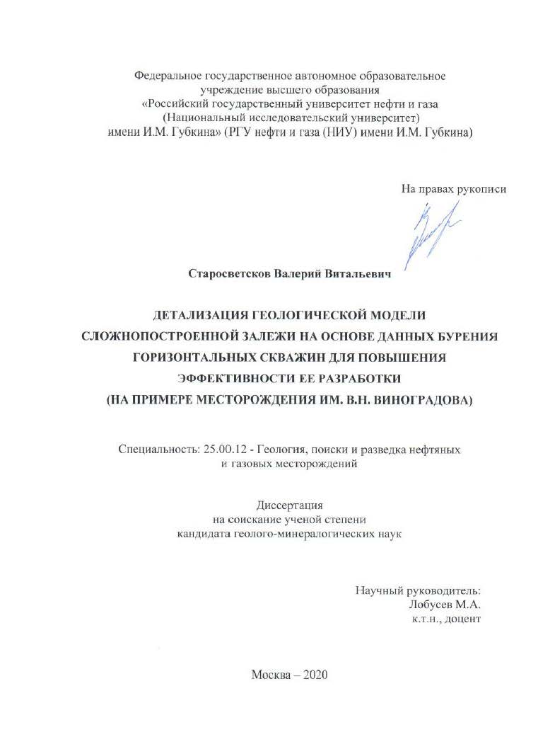 Детализация геологической модели сложнопостроенной залежи на основе данных бурения горизонтальных скважин для повышения эффективности ее разработки (на примере месторождения им. В.Н. Виноградова)