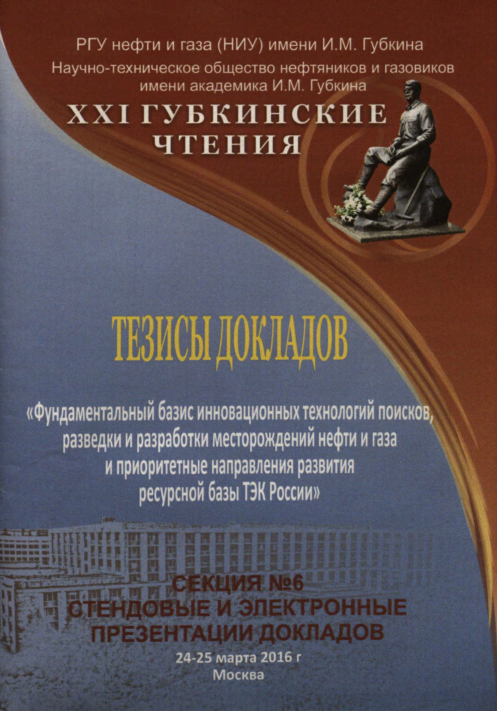 Фундаментальный базис инновационных технологий поисков, разведки и разработки месторождений нефти и газа и приоритетные направления развития ресурсной базы ТЭК России. Секция 6. Стендовые и электронные презентации докладов