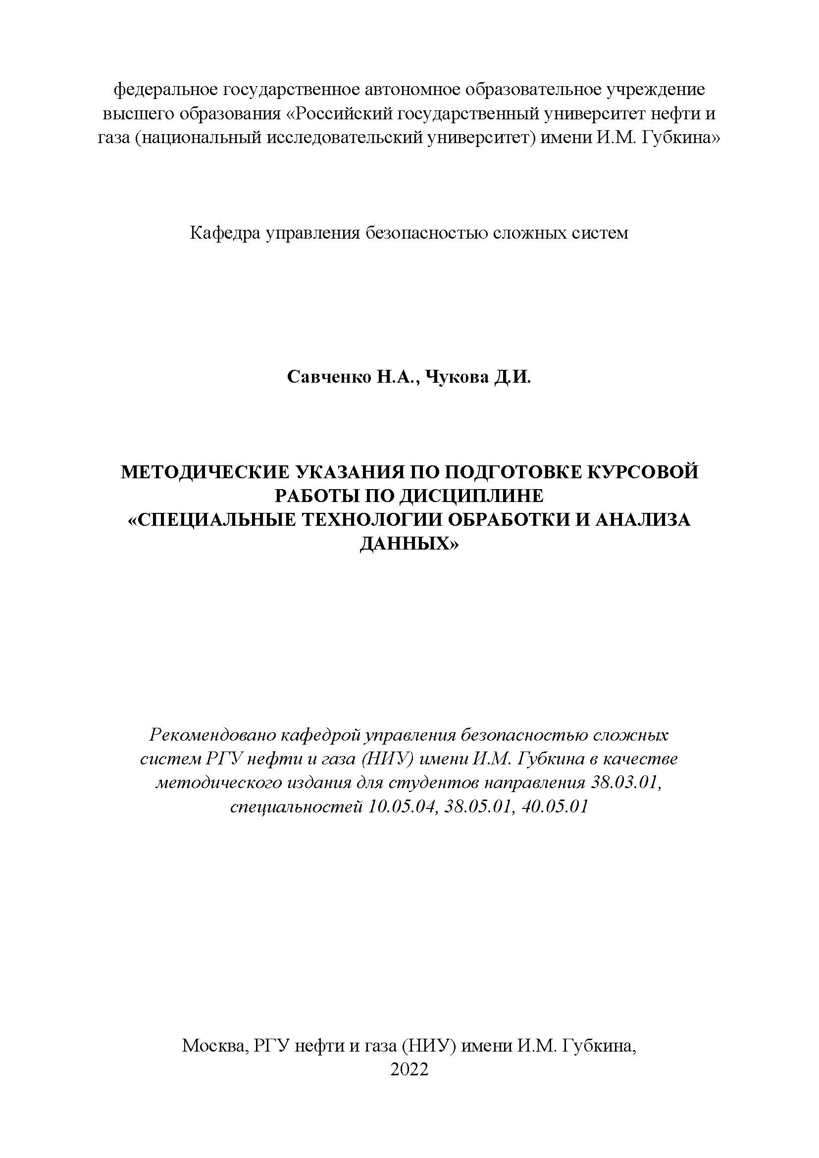 Методические указания по подготовке курсовой работы по дисциплине «Специальные технологии обработки и анализа данных»