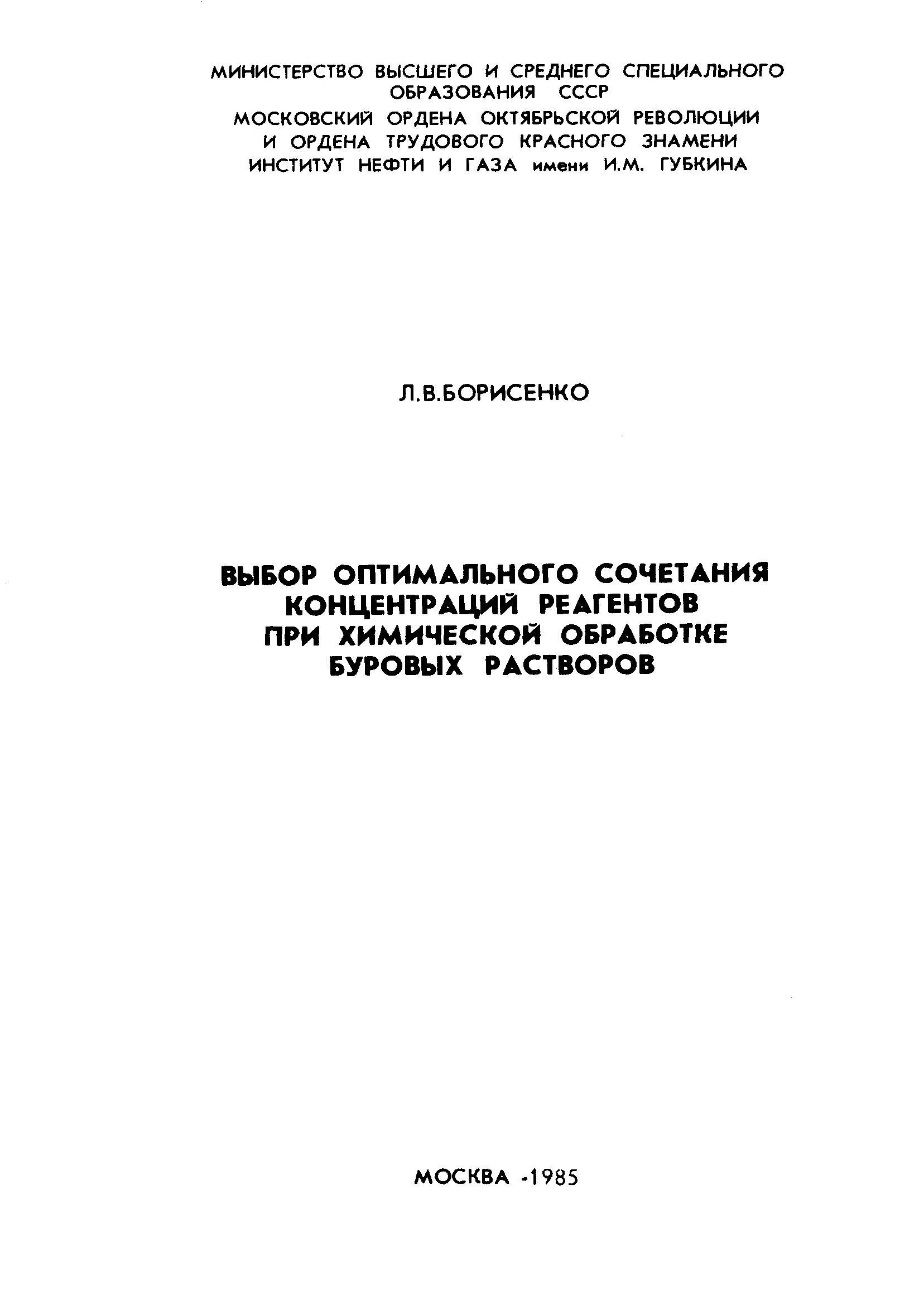 Выбор оптимального сочетания концентрации реагентов при химической обработке буровых растворов