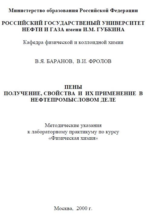 Пены. Получение, свойства и их применение в нефтепромысловом деле