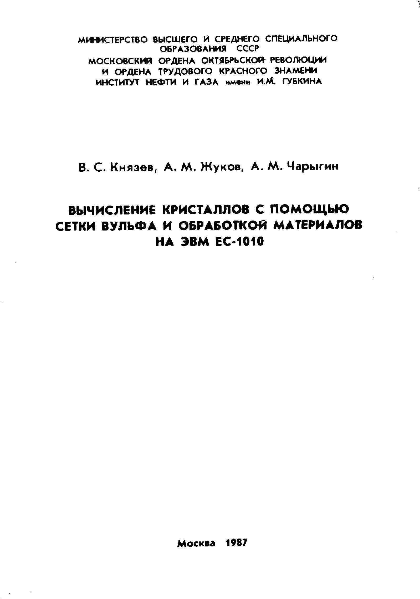Вычисление кристаллов с помощью сетки Вульфа и обработкой материалов на ЭВМ ЕС-1010