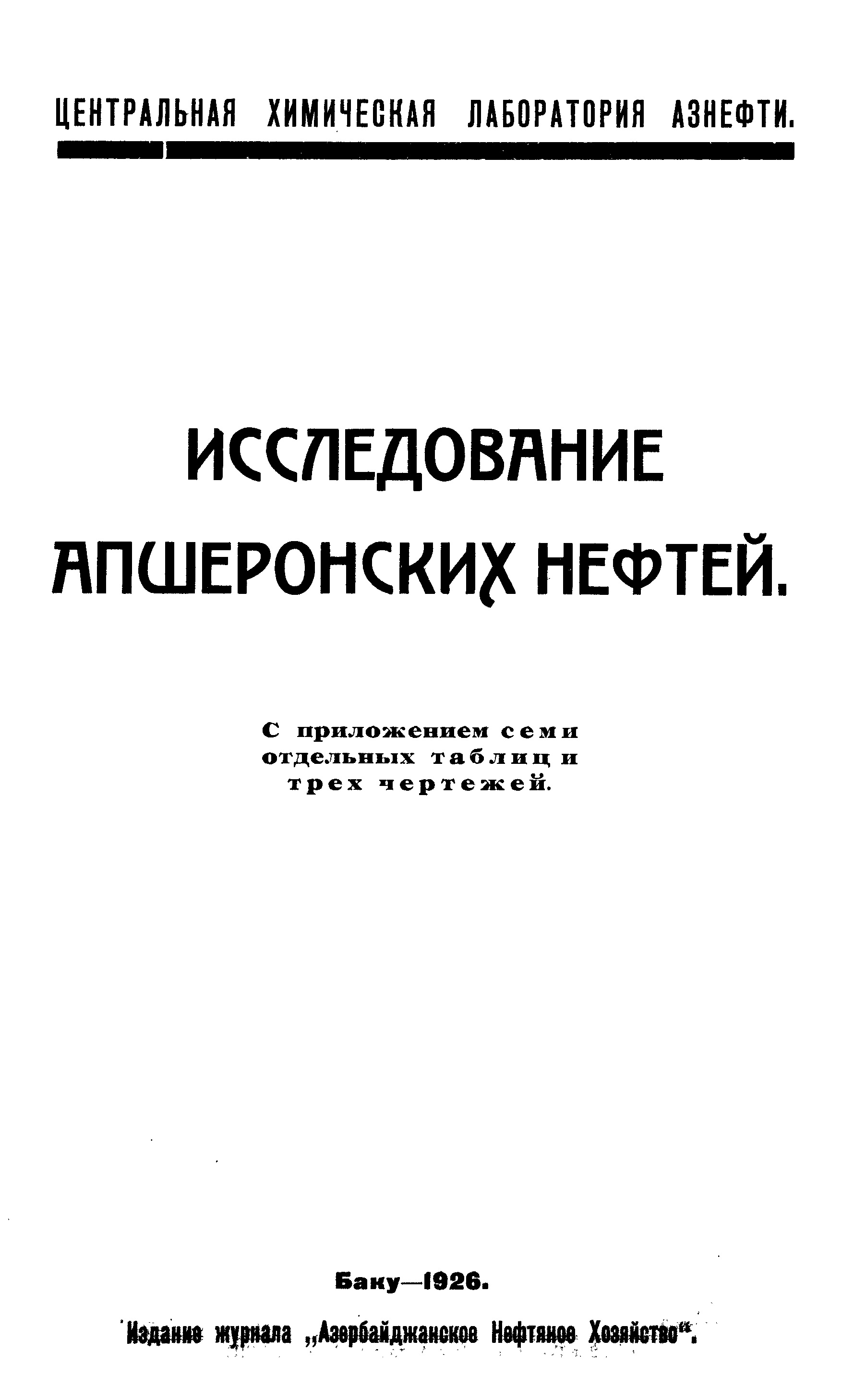 Исследование апшеронских нефтей (с приложением семи отдельных таблиц и трех чертежей)