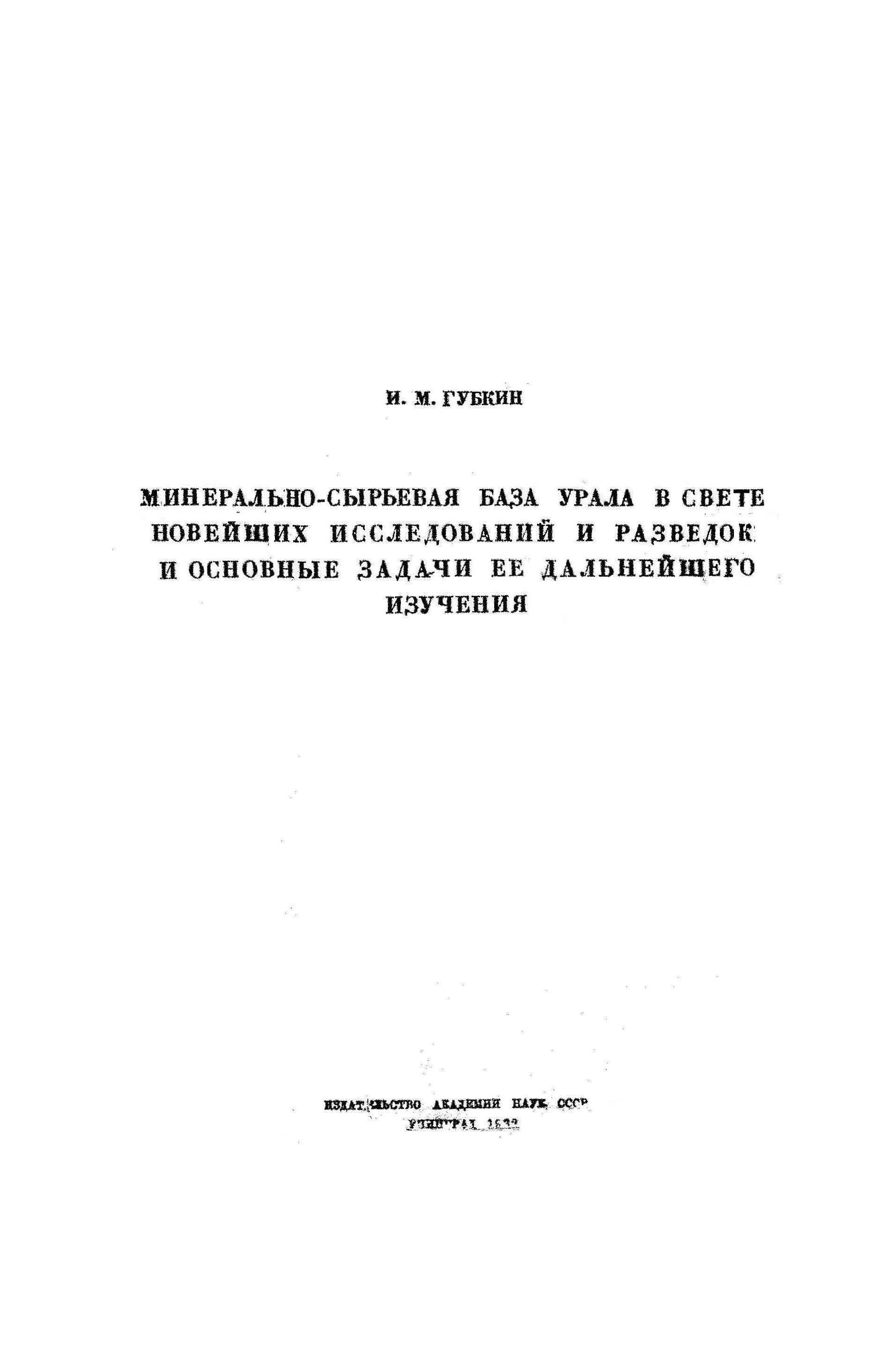 Минерально-сырьевая база Урала в свете новейших исследований и разведок и основные задачи ее дальнейшего изучения