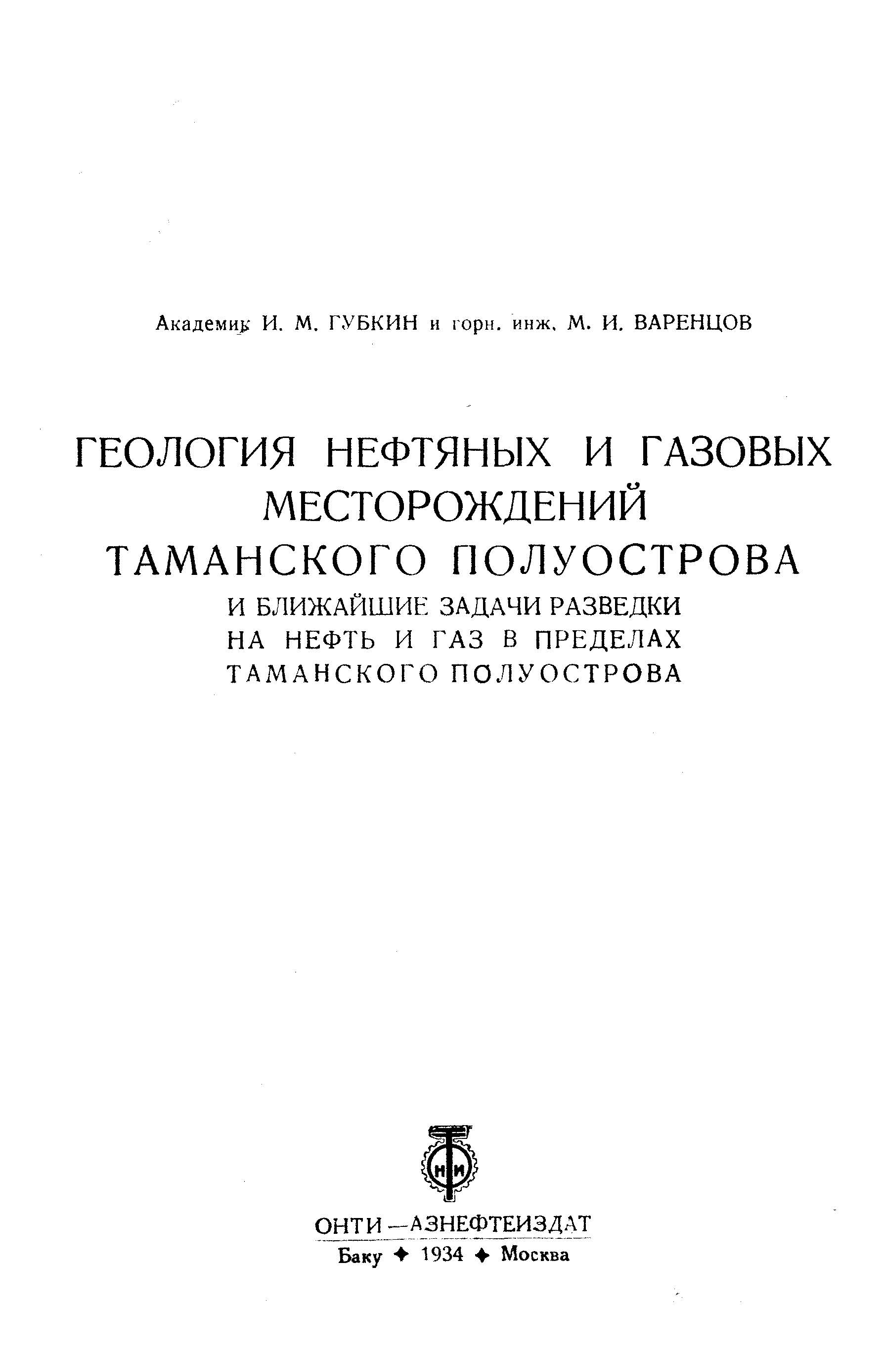 Геология нефтяных и газовых месторождений Таманского полуострова и ближайшие задачи разведки на нефть и газ в пределах Таманского полуострова
