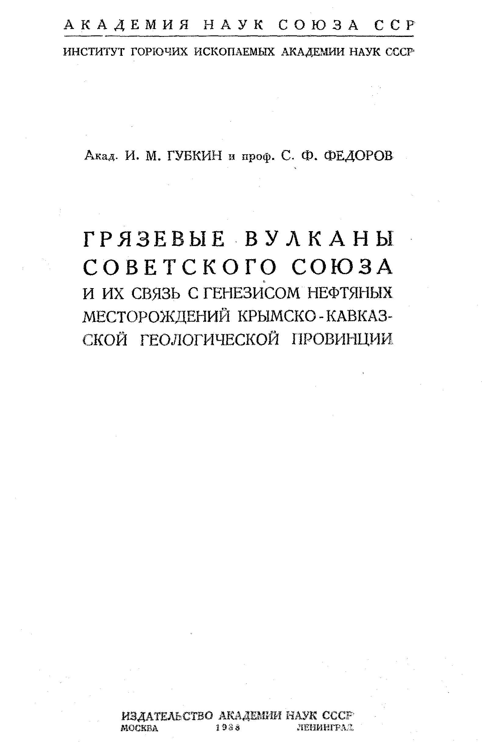Грязевые вулканы Советского Союза и их связь с генезисом нефтяных месторождений Крымско-Кавказской геологической провинции