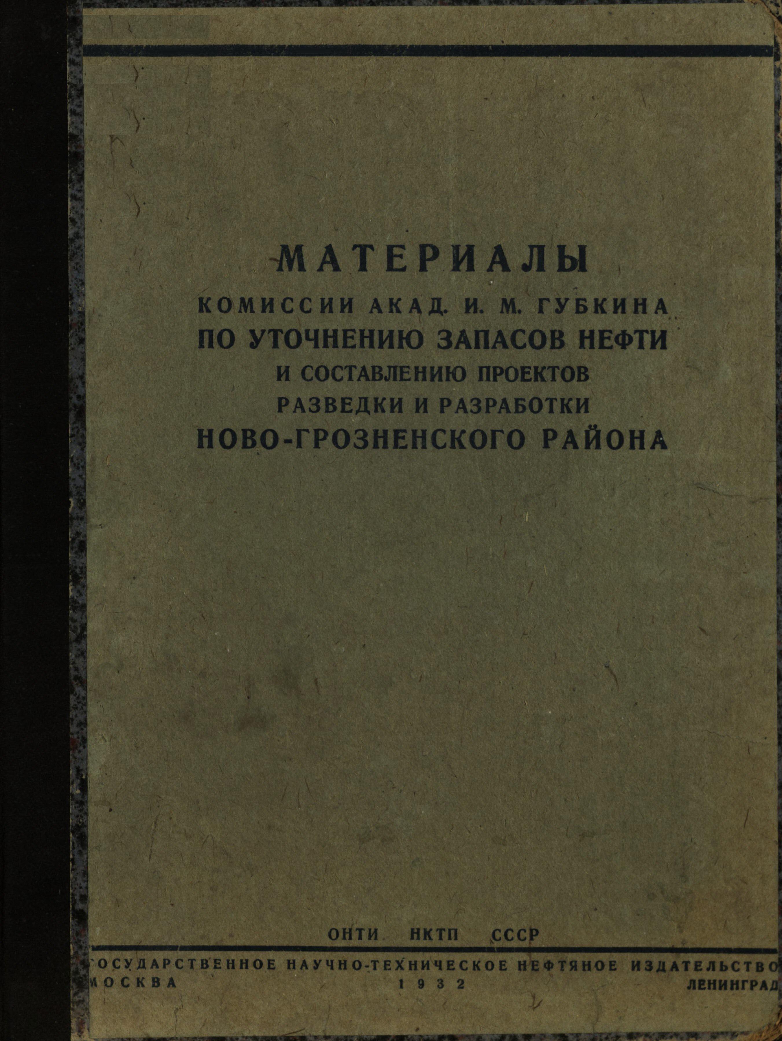 Материалы Комиссии академика И.М. Губкина по уточнению запасов нефти и составлению проектов разведки и разработки Ново-Грозненского района