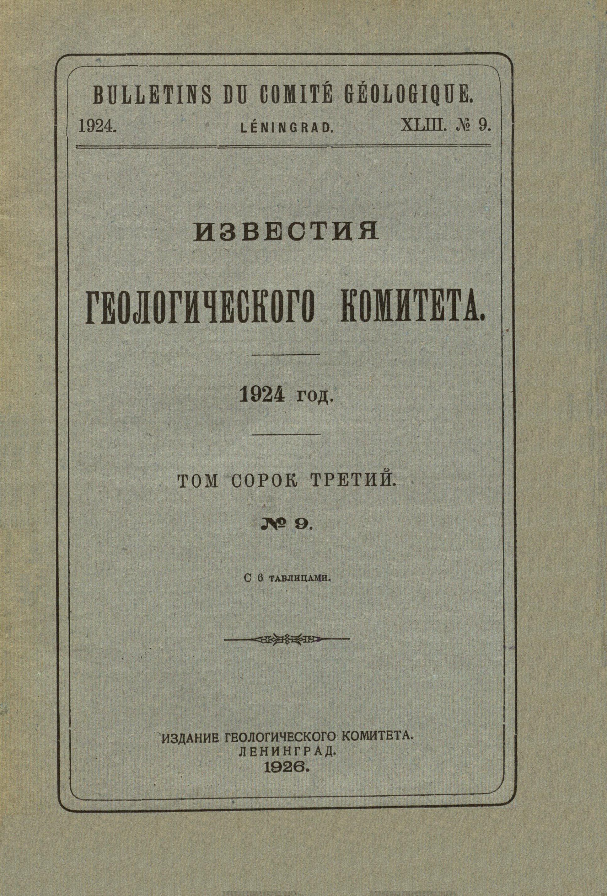 Известия Геологического комитета. 1924 г.. Т. 43. № 9