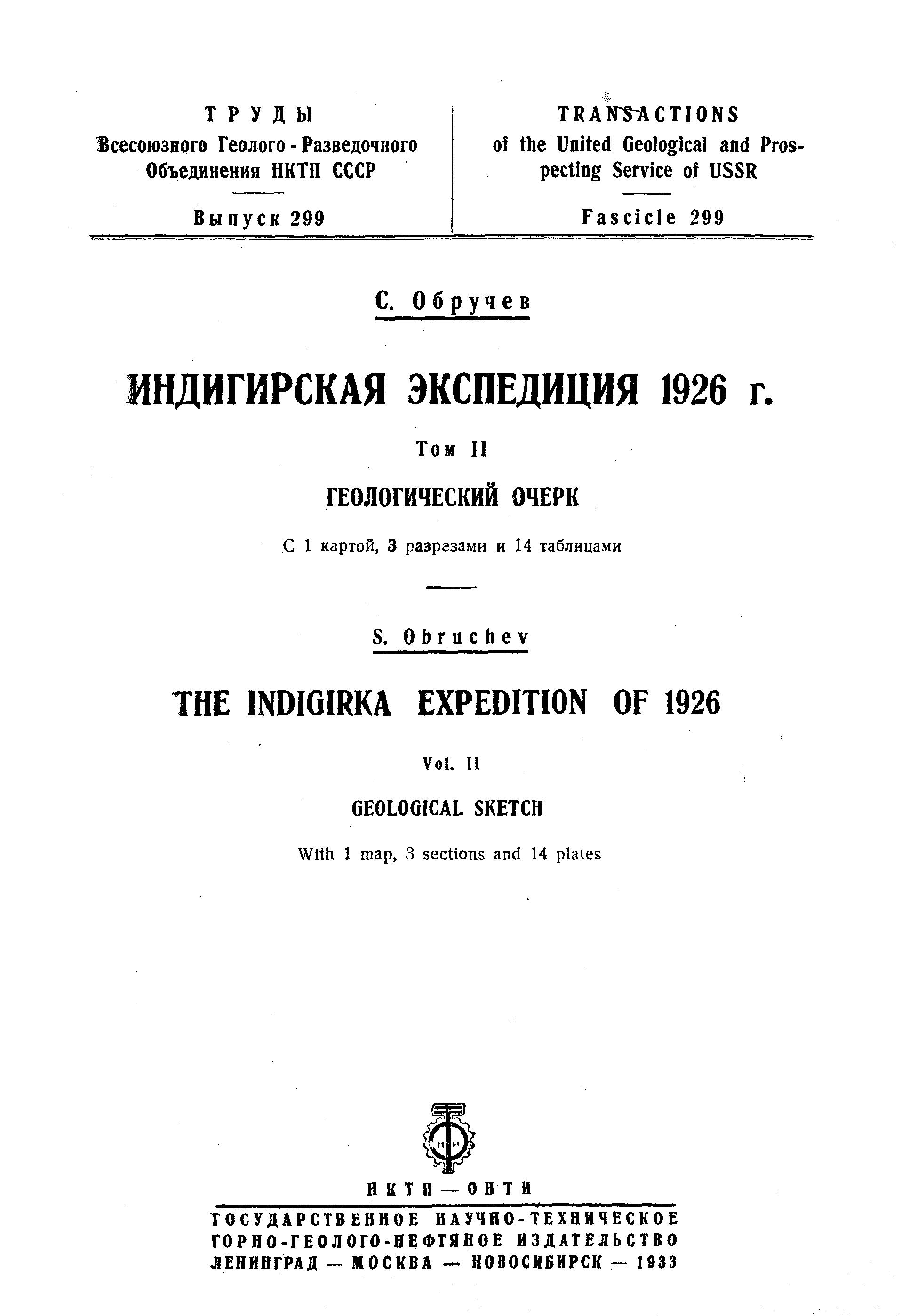 Индигирская экспедиция 1926 г.. Т. 2. Геологичекий очерк