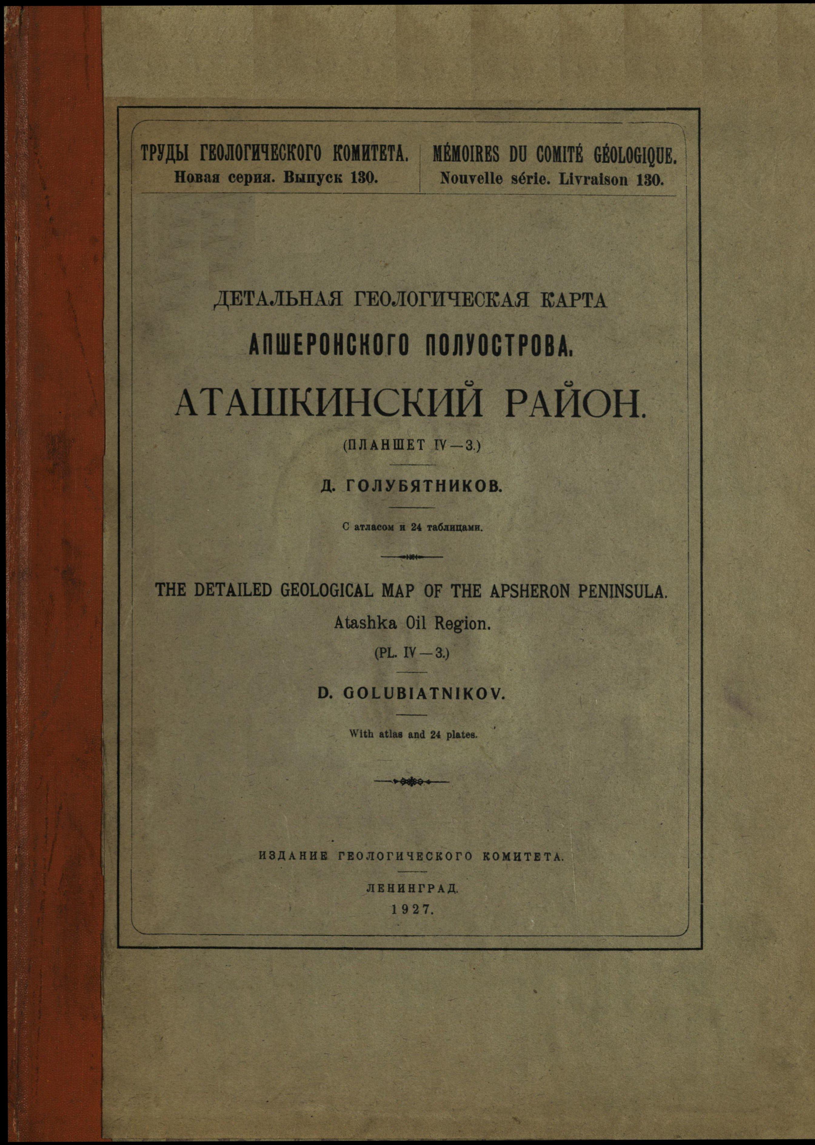 Детальная геологическая карта Апшеронского полуострова. Биби-Эйбат. Ч. 2. Геотермические наблюдения на Биби-Эйбате и в Сураханах. Буровые воды Биби-Эйбата. Физико-химические свойства нефти