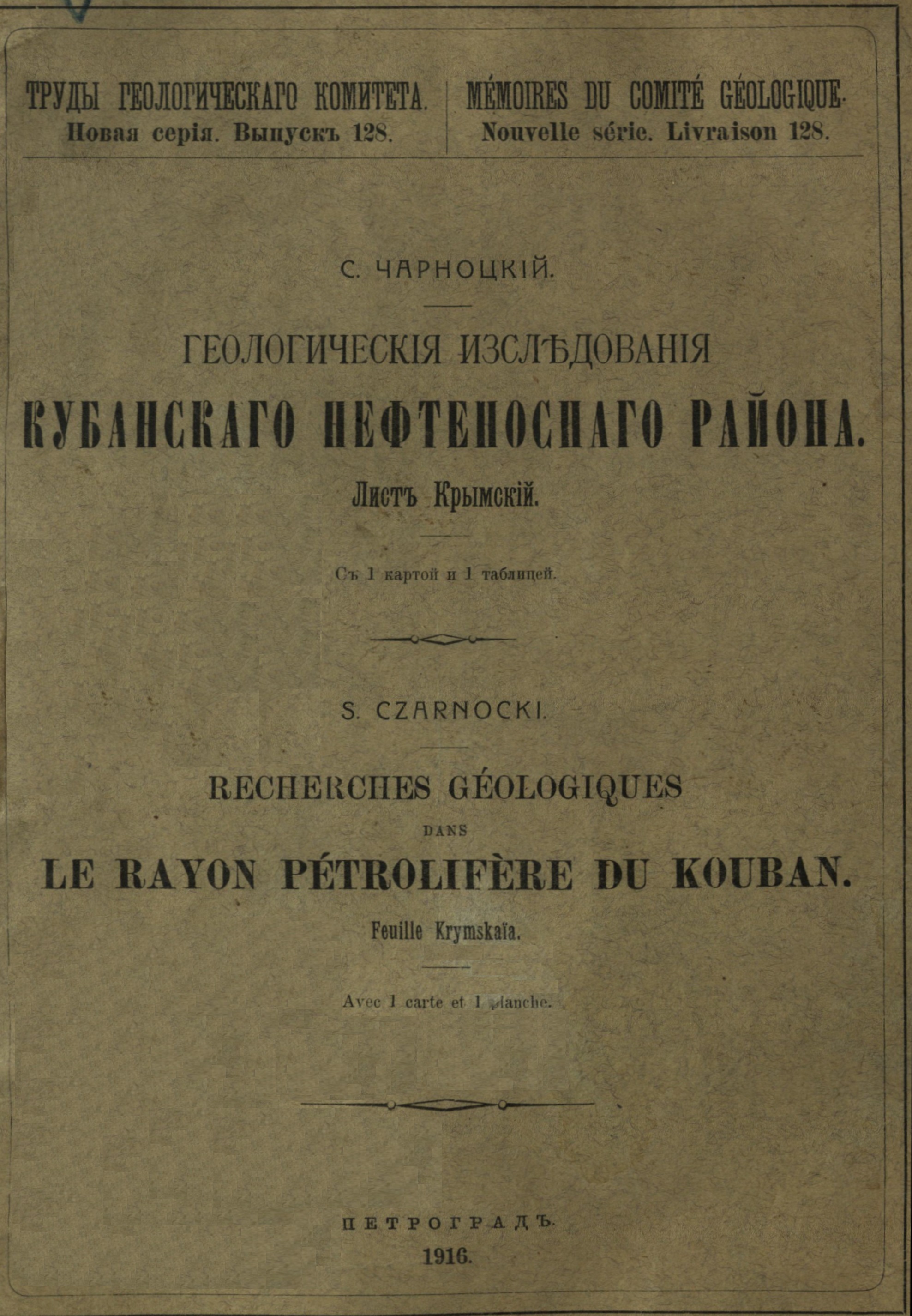 Геологические исследования Кубанского нефтеносного района. Лист Крымский. Вып. 128