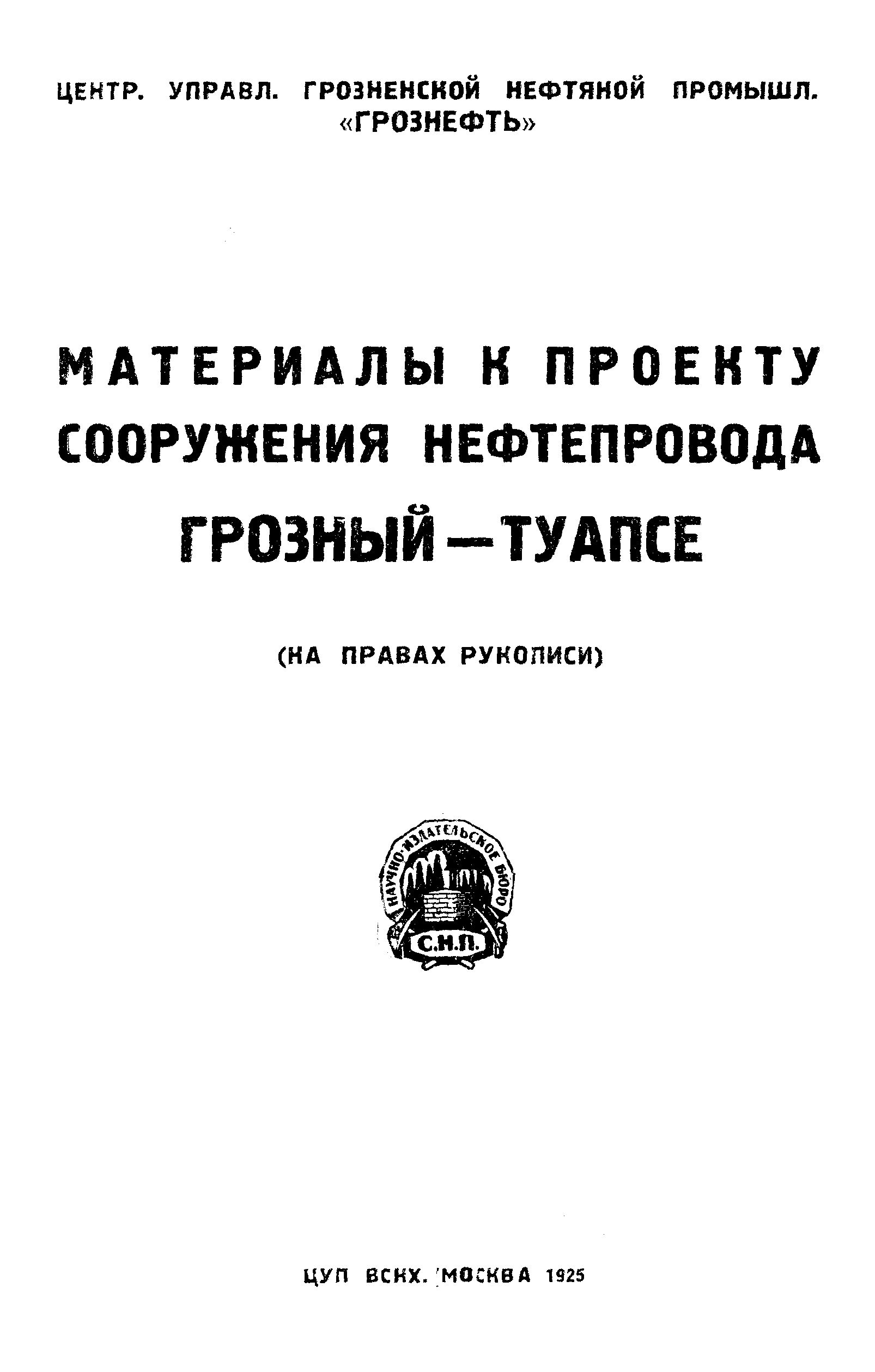 Материалы к проекту сооружения нефтепровода Грозный-Туапсе