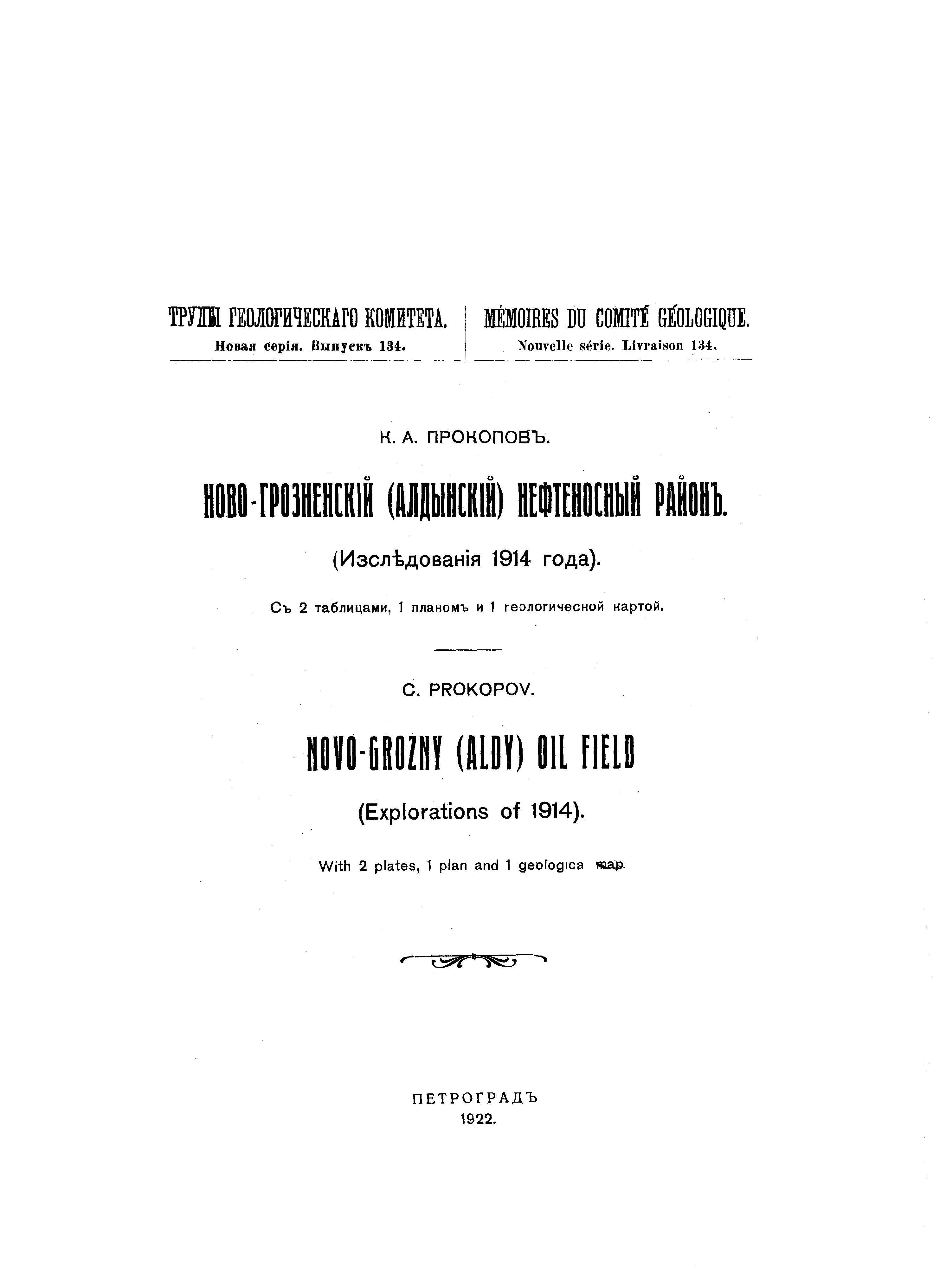 Ново-Грозненский (Алдынский) нефтеносный район (Исследования 1914 года). С 2 таблицами, 1 планом и 1 геологической картой