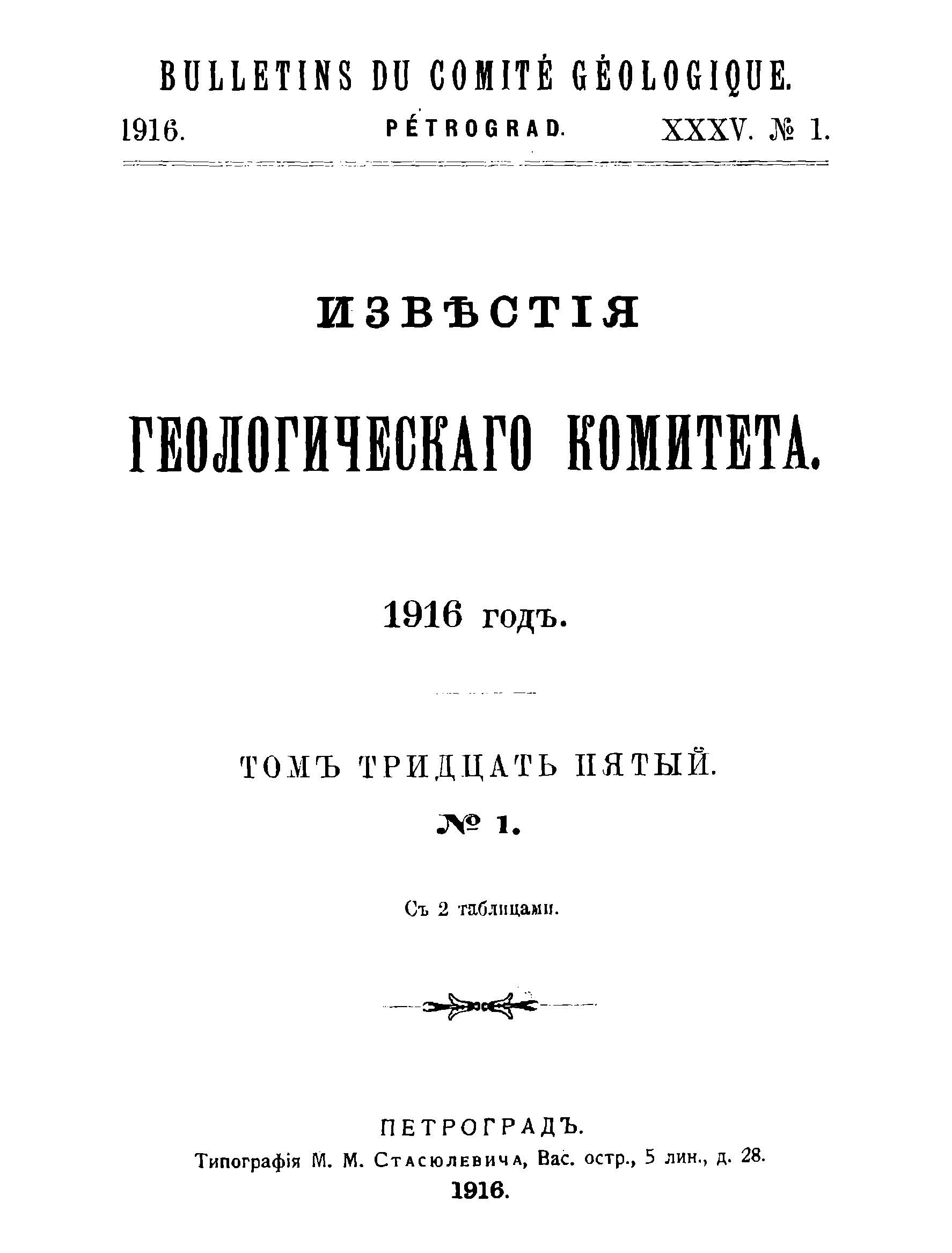Известия Геологического комитета. 1916 г.. Т. 35. № 1
