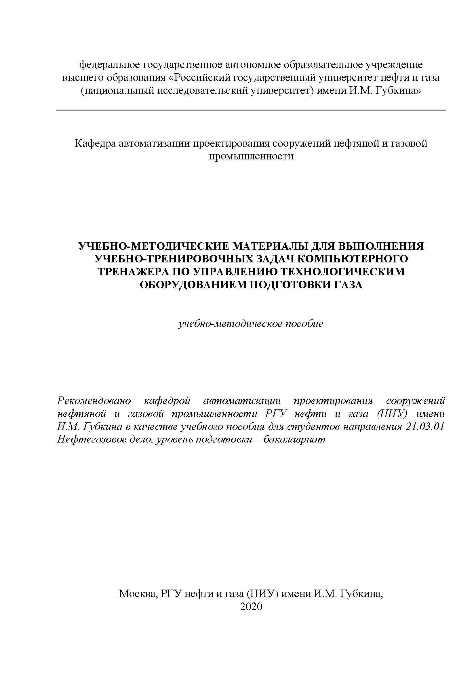 Учебно-методические материалы для выполнения учебно-тренировочных задач компьютерного тренажера по управлению технологическим оборудованием подготовки газа