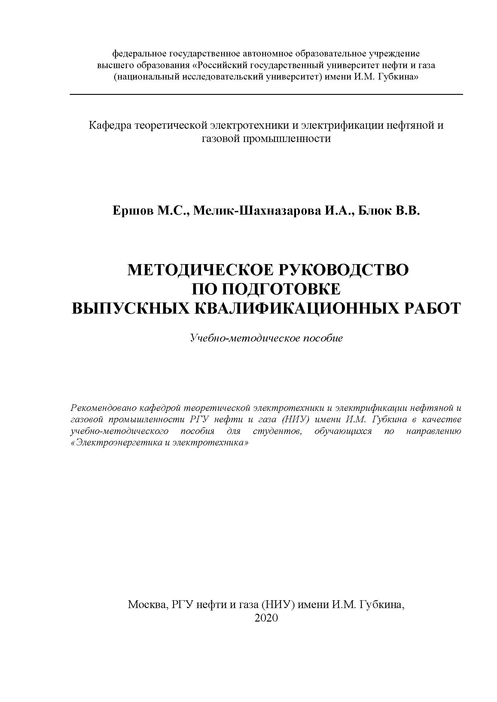 Методическое руководство по подготовке выпускных квалификационных работ