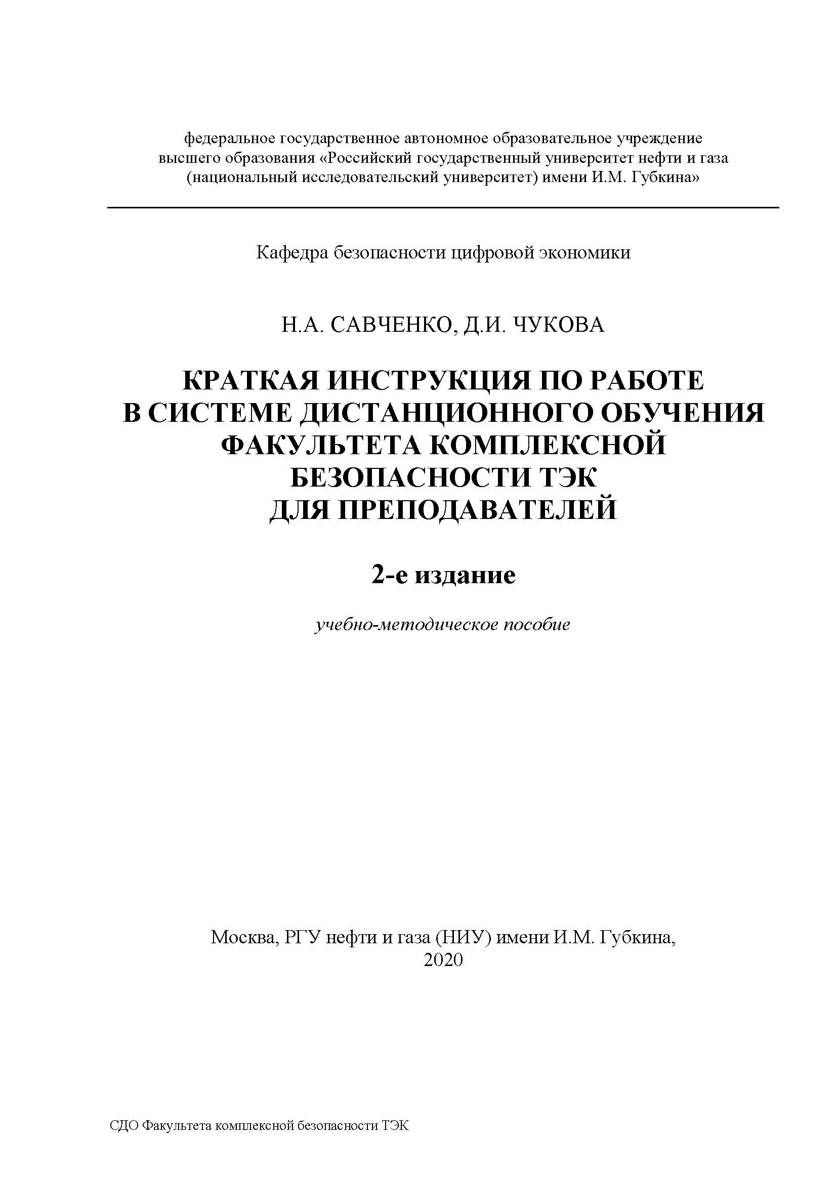 Краткая инструкция по работе в системе дистанционного обучения факультета комплексной безопасности ТЭК для преподавателей