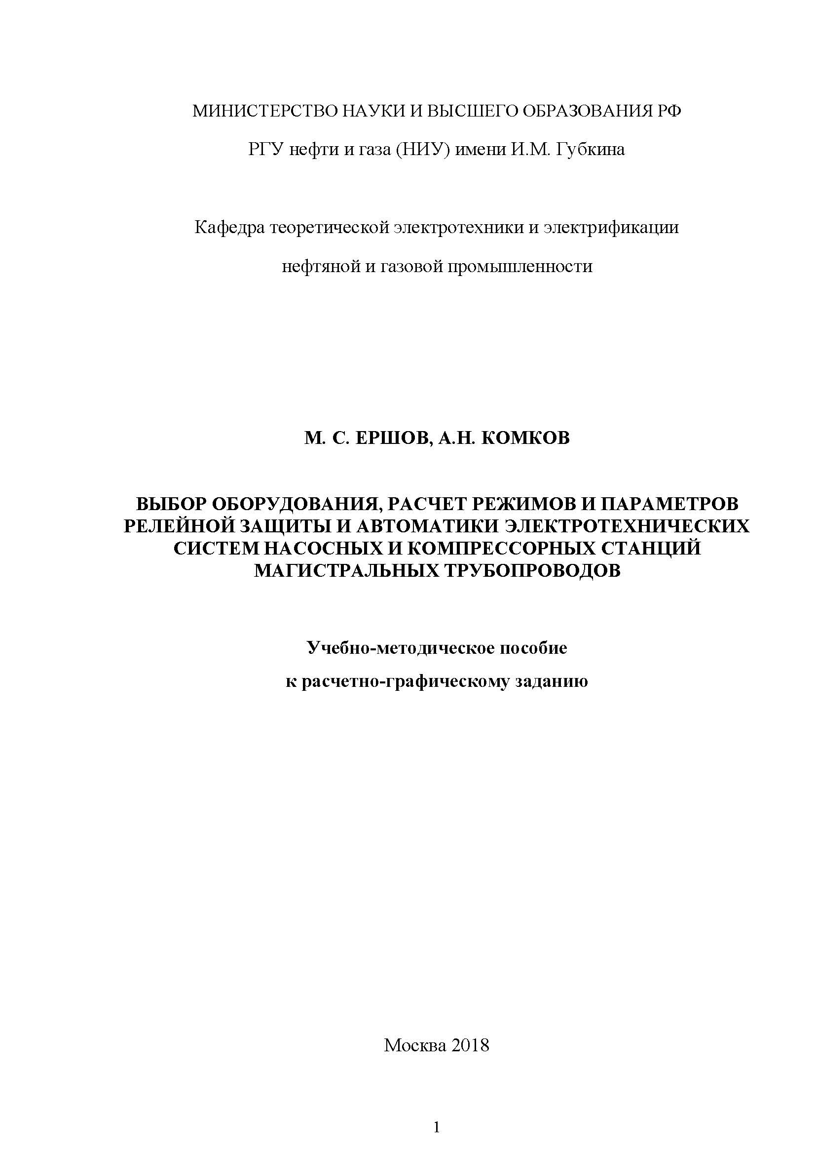 Выбор оборудования, расчет режимов и параметров релейной защиты и автоматики электротехнических систем насосных и компрессорных станций магистральных трубопроводов