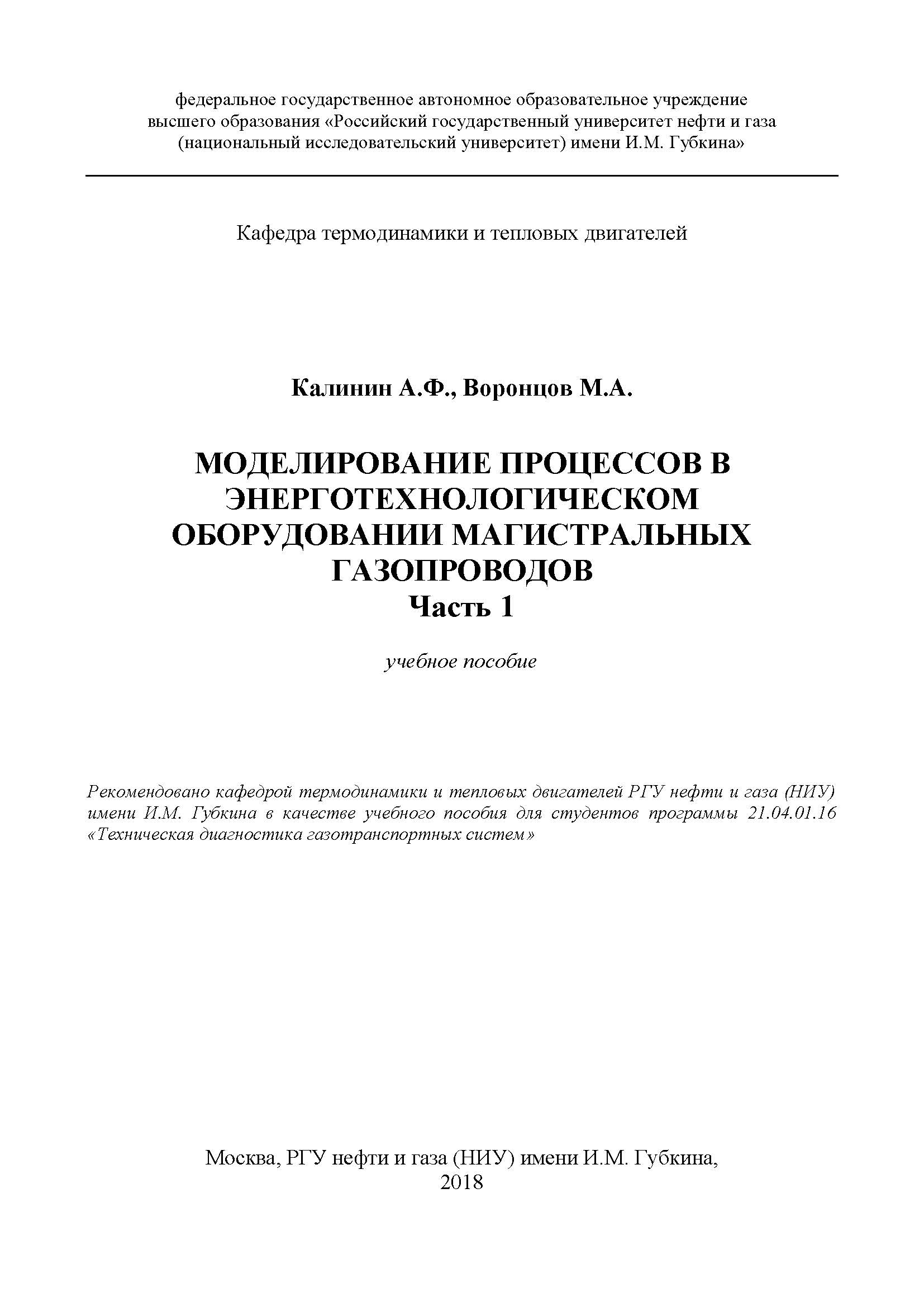 Моделирование процессов в энерготехнологическом оборудовании магистральных газопроводов