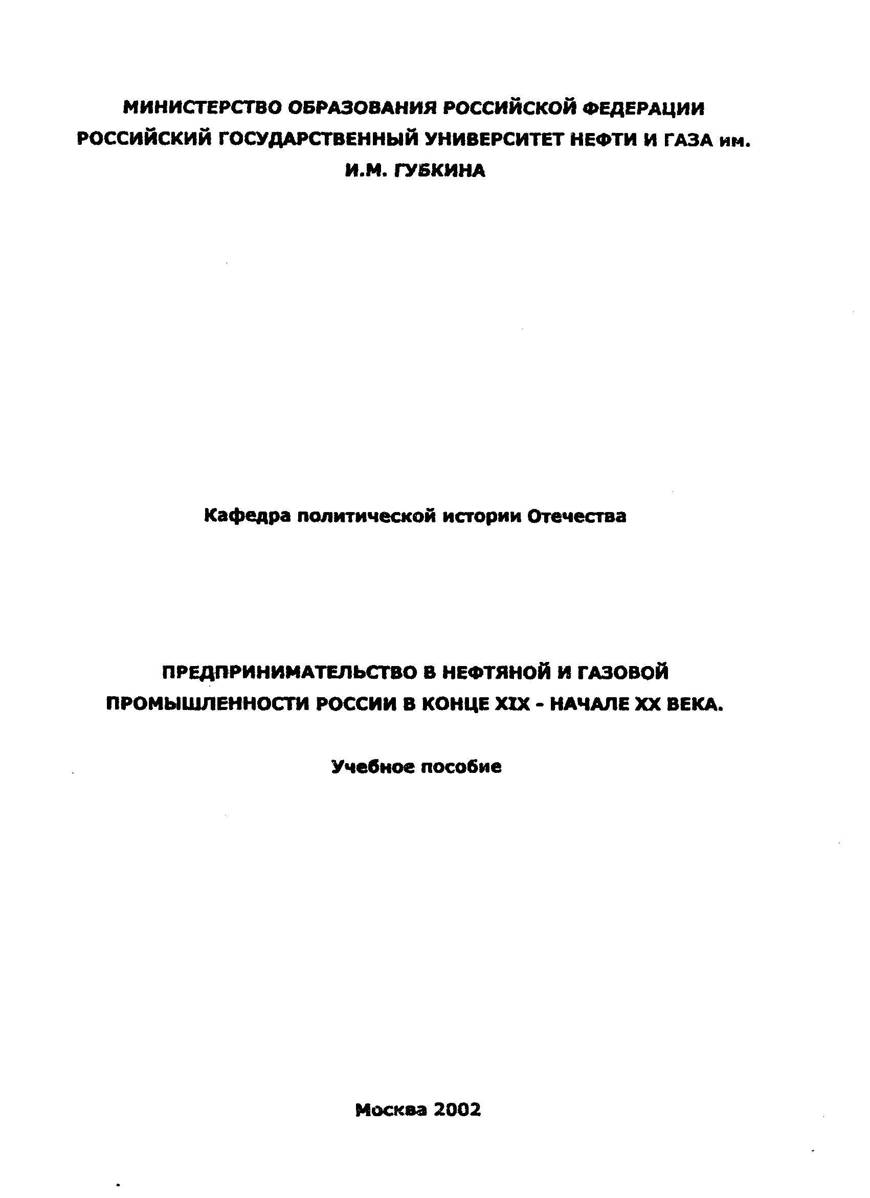 Предпринимательство в нефтяной и газовой промышленности России в конце ХIХ - начале ХХ века