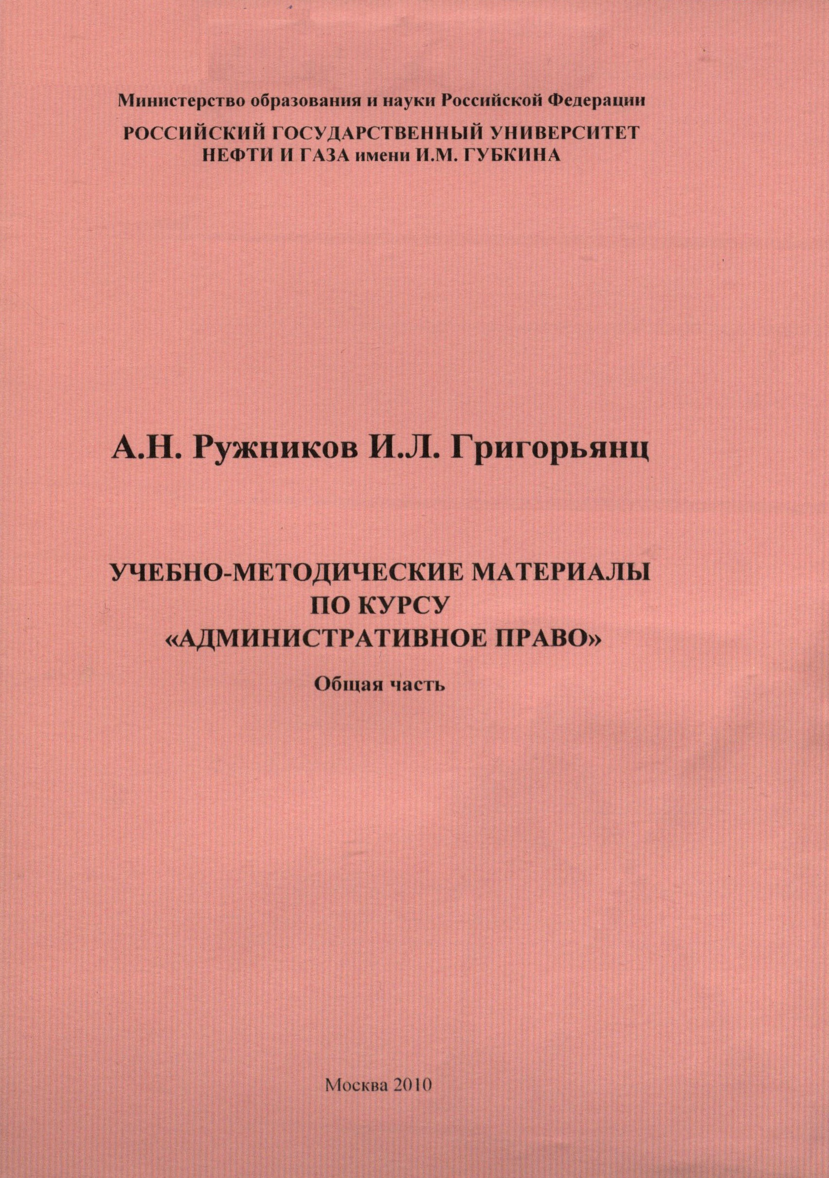 Учебно-методические материалы по курсу "Административное право ". Рабочая программа общей части дисциплины "Административное право"