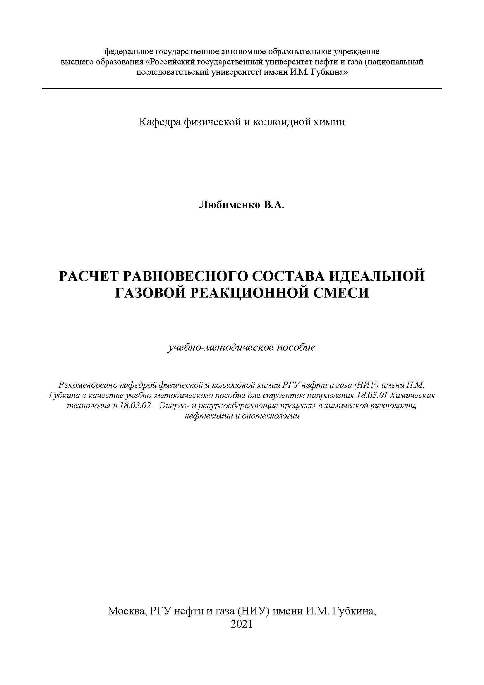Расчет равновесного состава идеальной газовой реакционной смеси